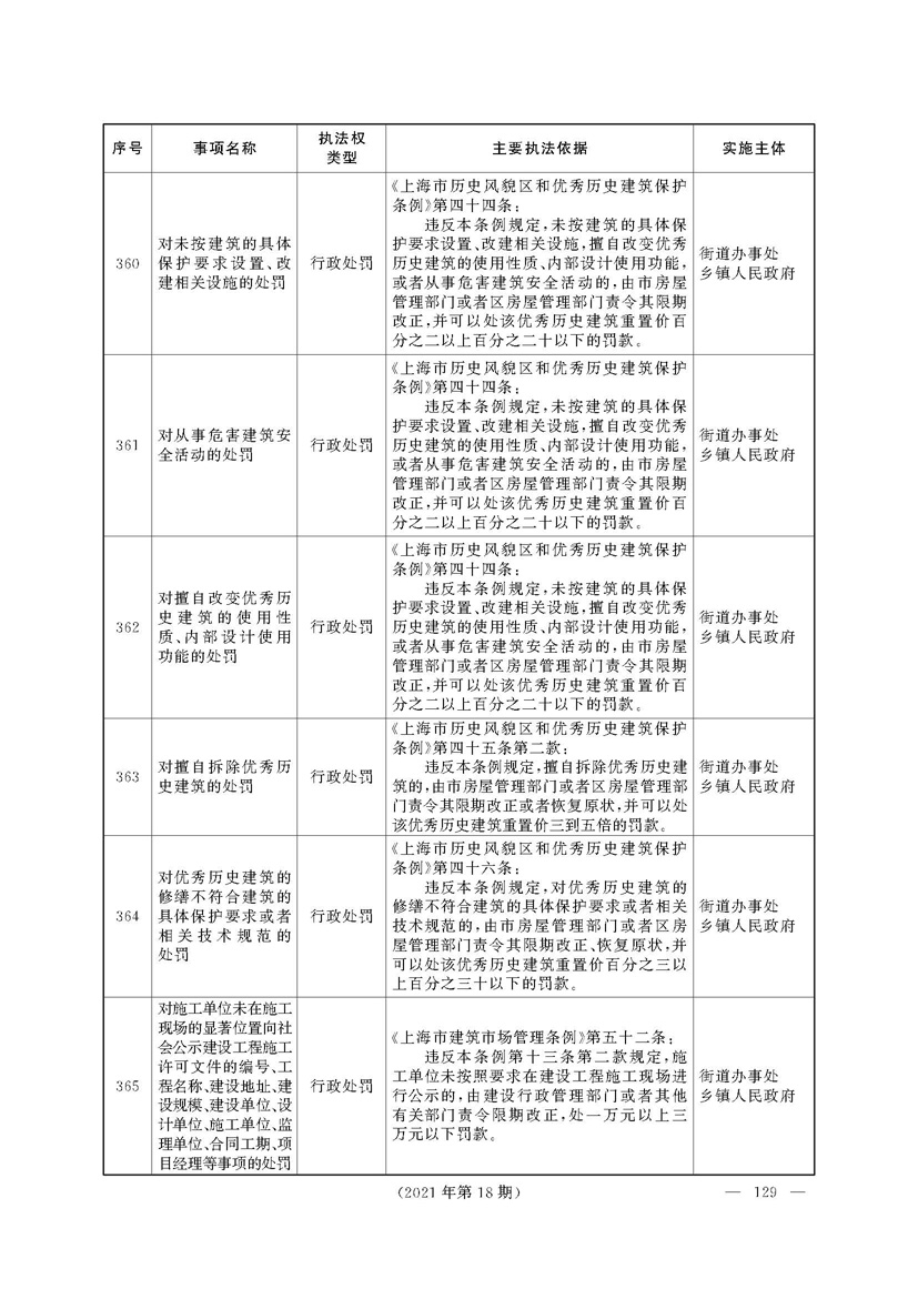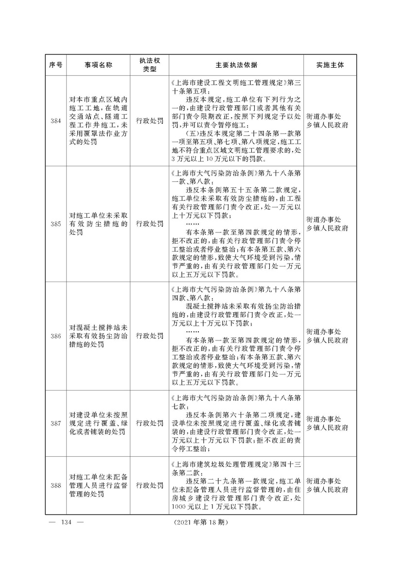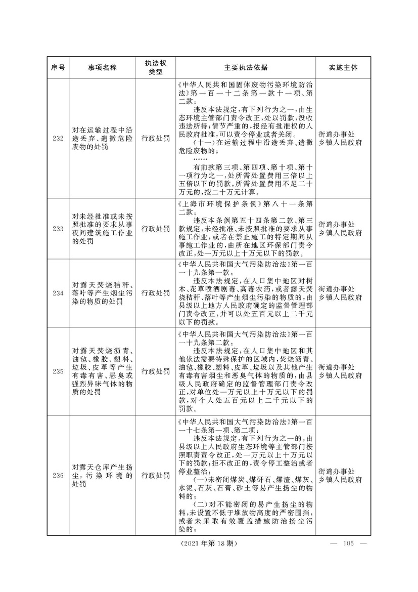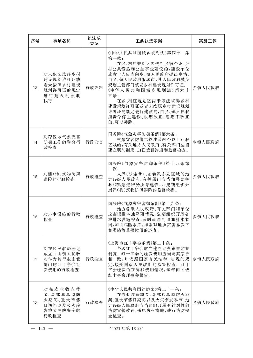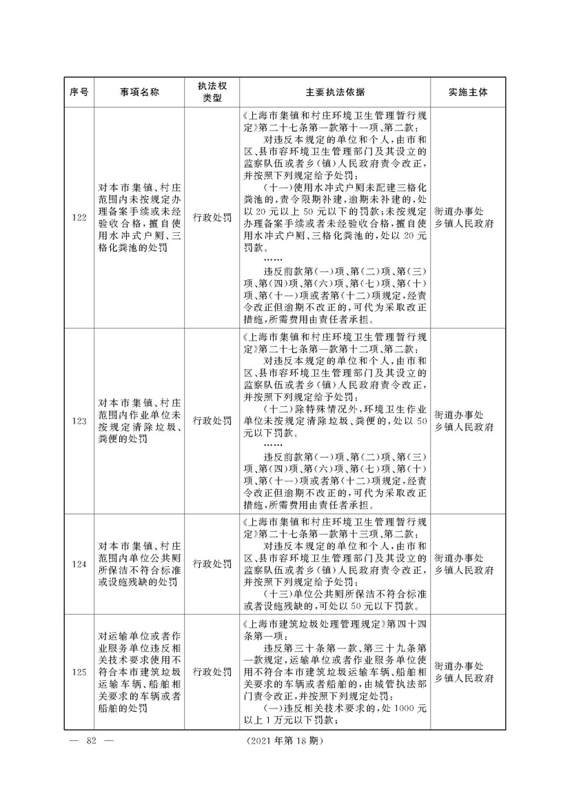 上海市人民政府关于印发《上海市街道办事处乡镇人民政府首批行政执法事项目录清单》的通知