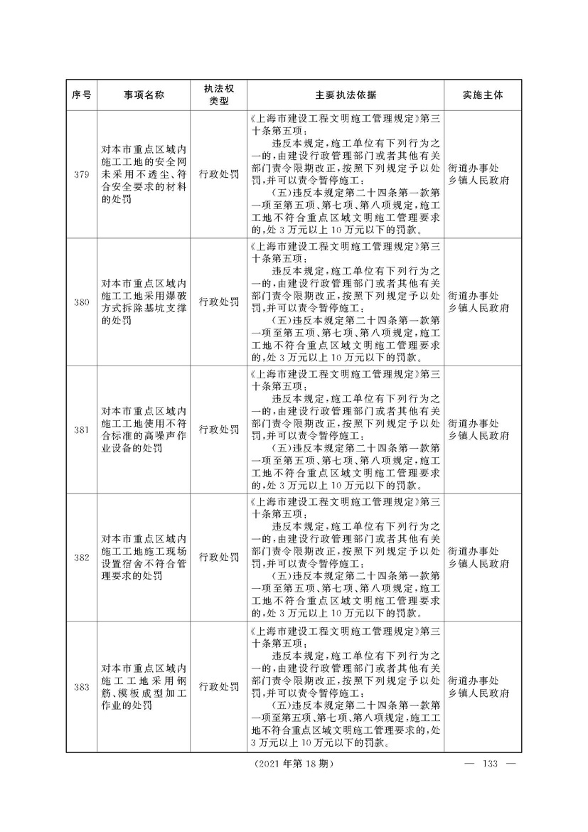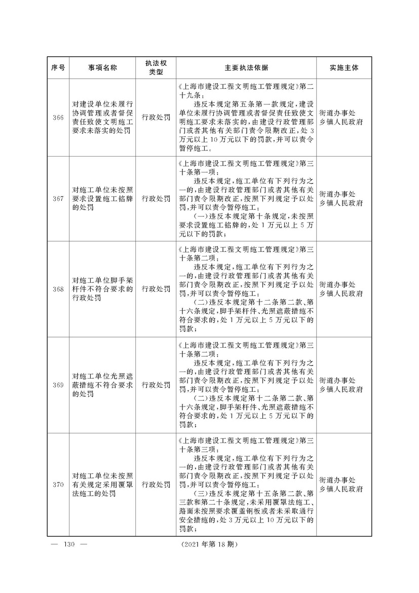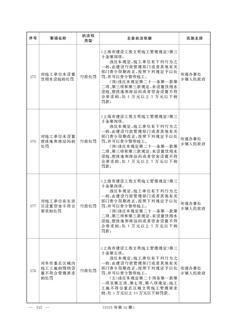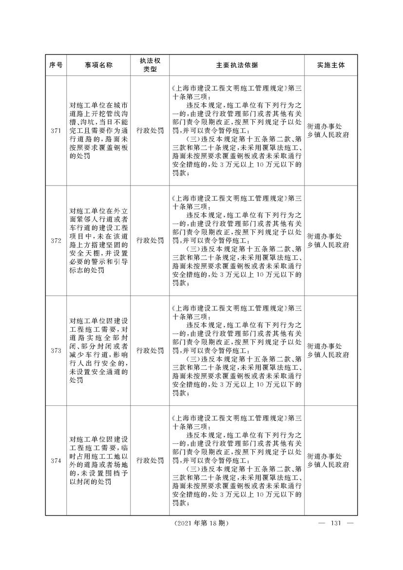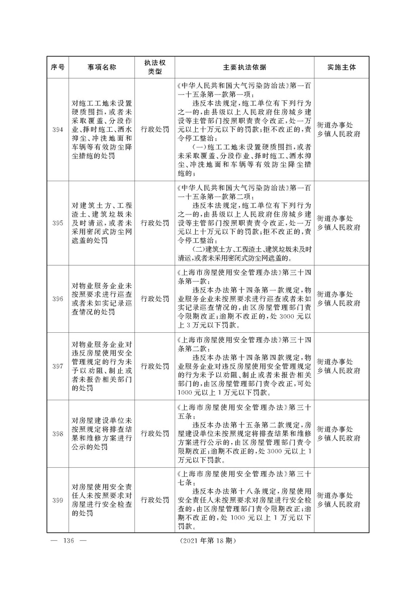 上海市人民政府关于印发《上海市街道办事处乡镇人民政府首批行政执法事项目录清单》的通知