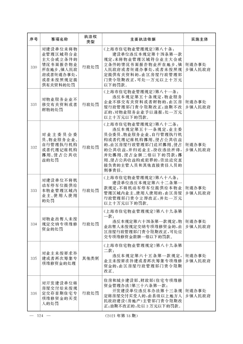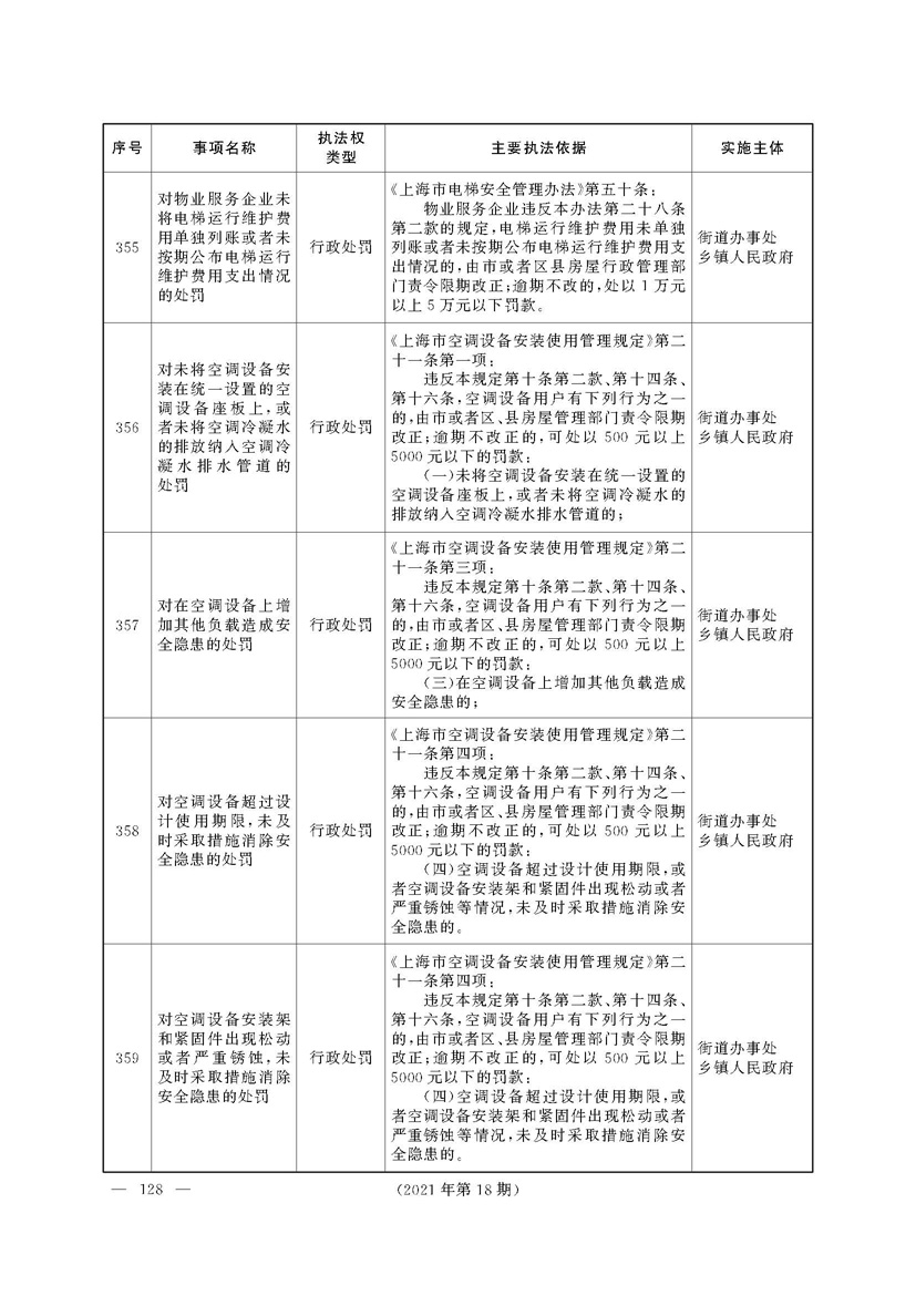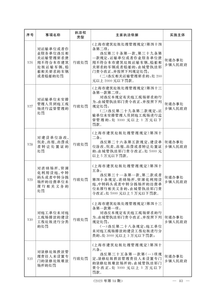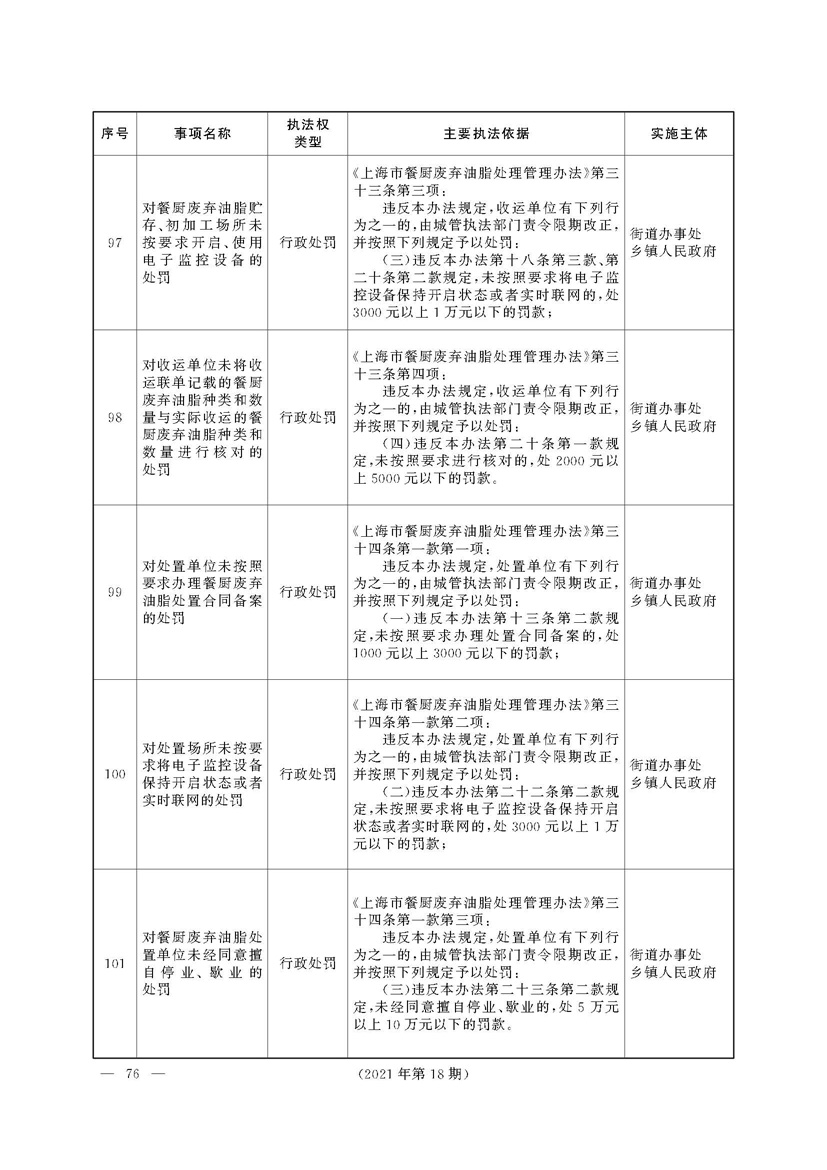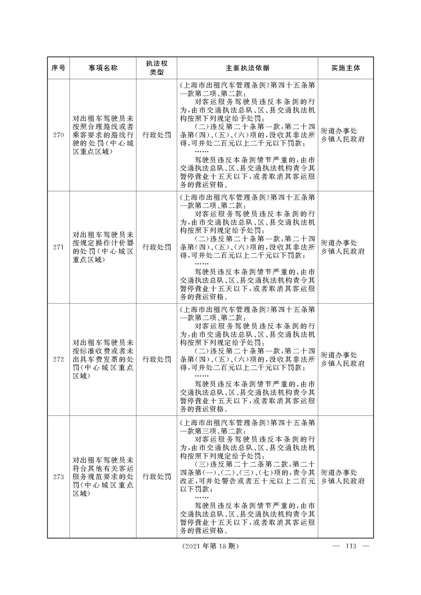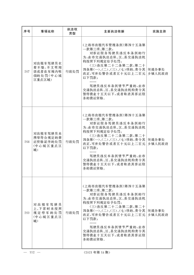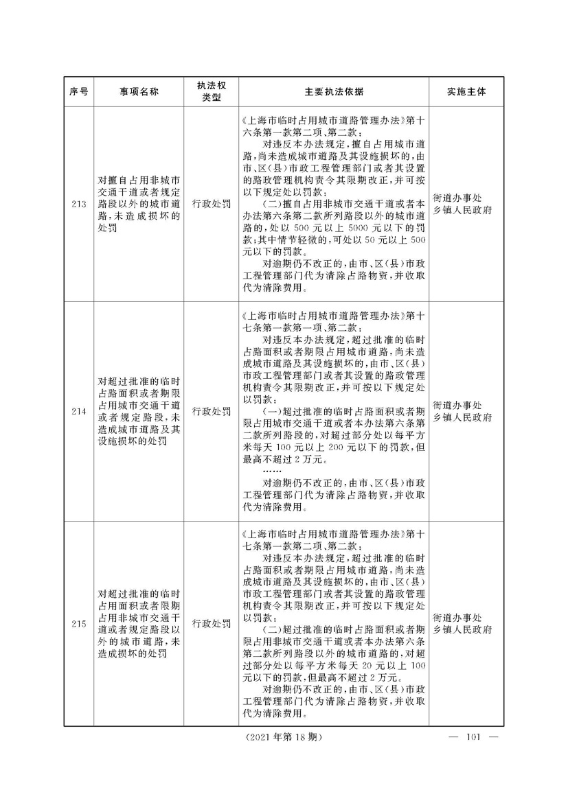 根据《中华人民共和国行政处罚法》《上海市城市管理行政执法条例》《上海市城市管理行政执法条例实施办法》等规定,市政府决定自2021年8月1日起,由街道办事处在本辖区内行使本目录清单中城管领域的行政执法权,乡镇人民政府仍以自己名义在本辖区内行使本目录清单中的行政执法事项。