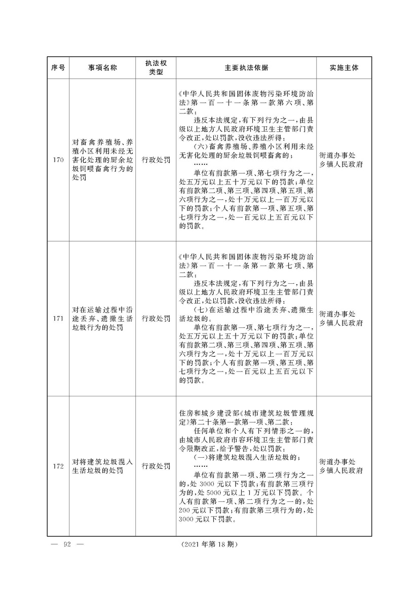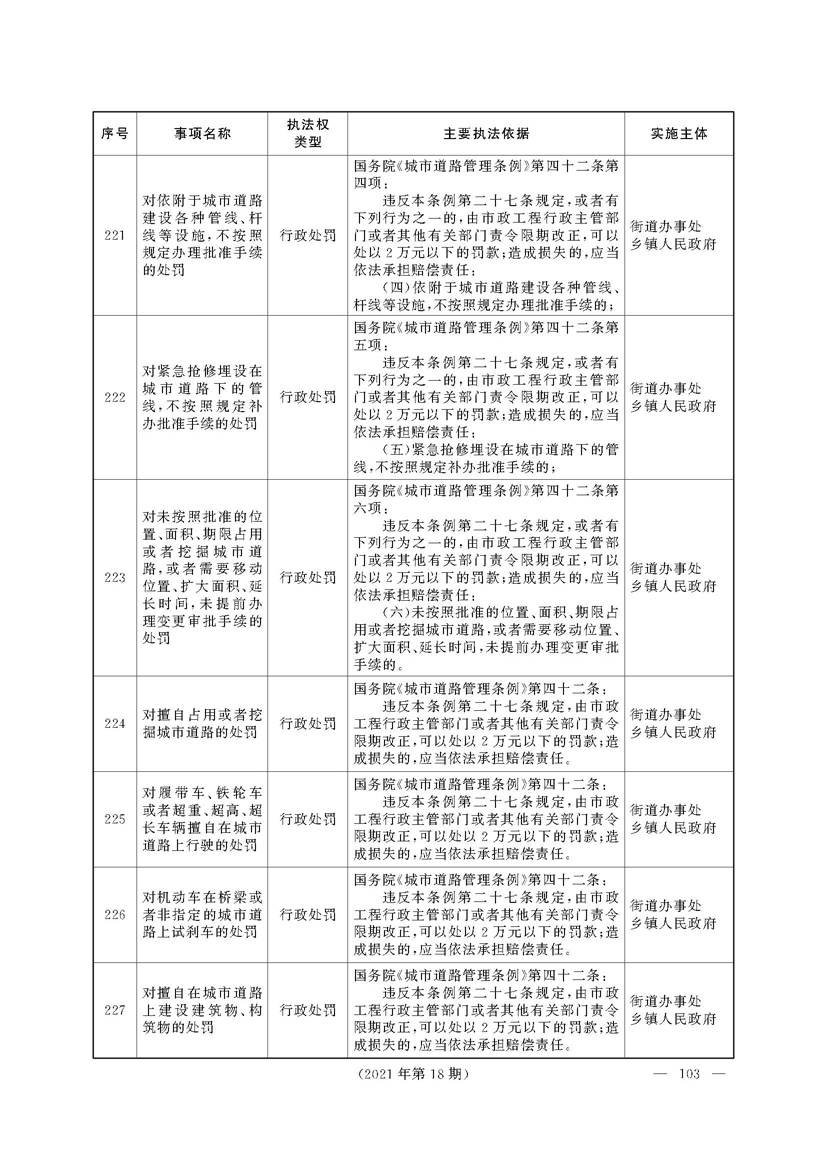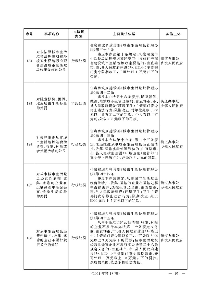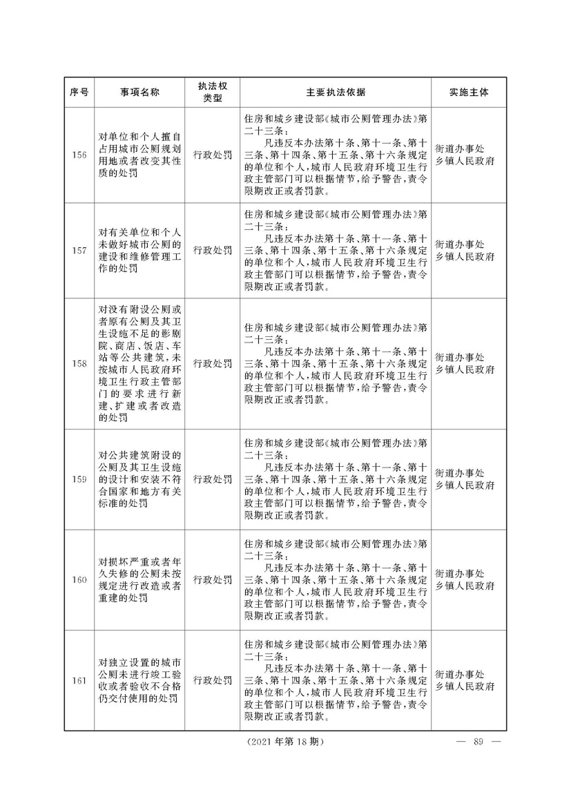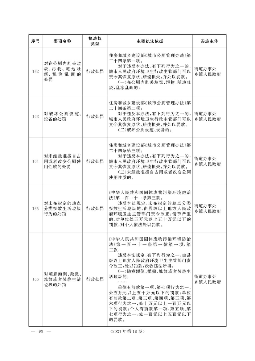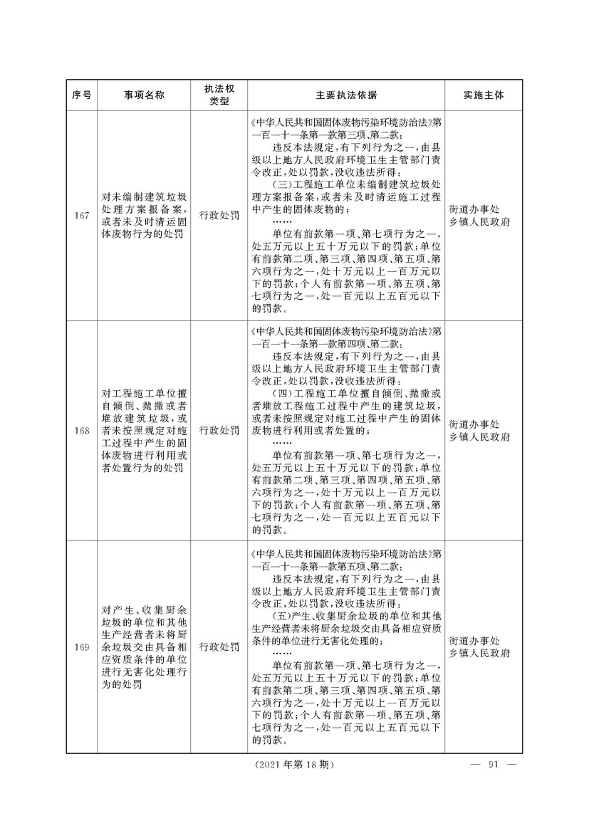 根据《中华人民共和国行政处罚法》《上海市城市管理行政执法条例》《上海市城市管理行政执法条例实施办法》等规定,市政府决定自2021年8月1日起,由街道办事处在本辖区内行使本目录清单中城管领域的行政执法权,乡镇人民政府仍以自己名义在本辖区内行使本目录清单中的行政执法事项。