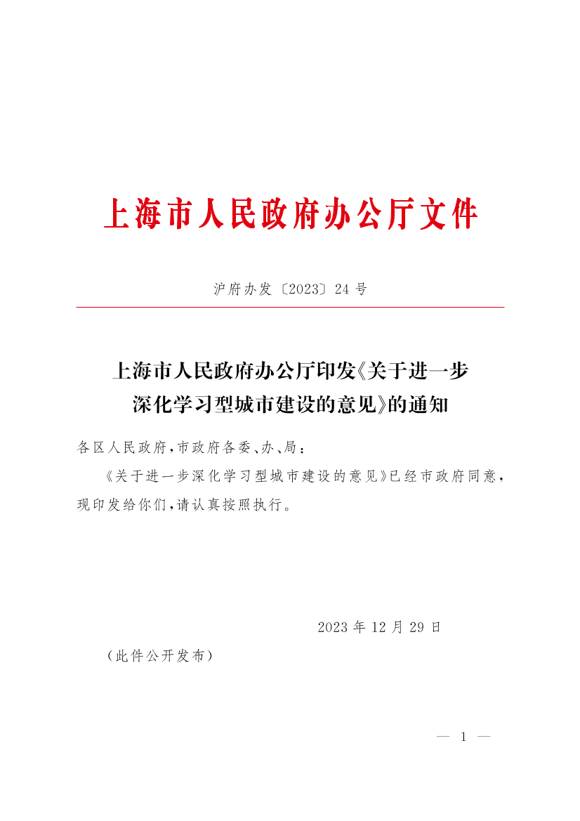 上海市人民政府办公厅印发《关于进一步深化学习型城市建设的意见》的通知