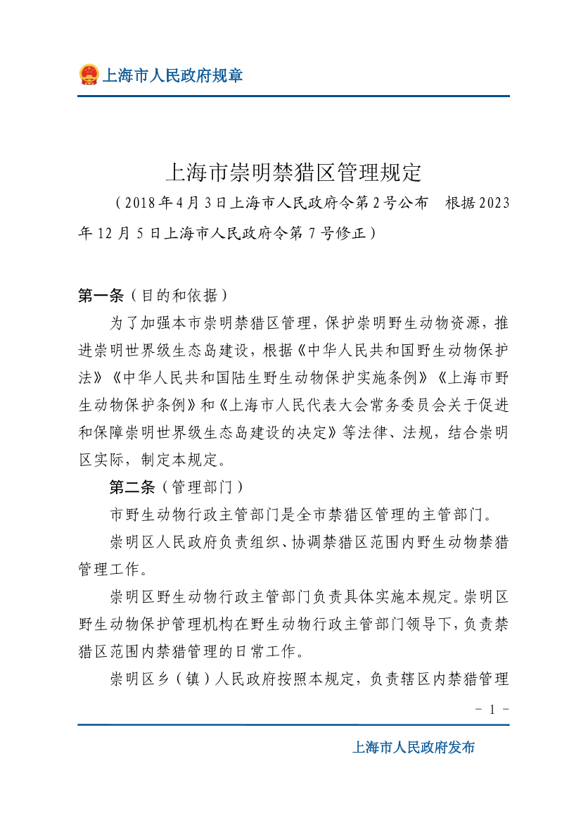 崇明区乡(镇)人民政府按照本规定,负责辖区内禁猎管理的相关工作。