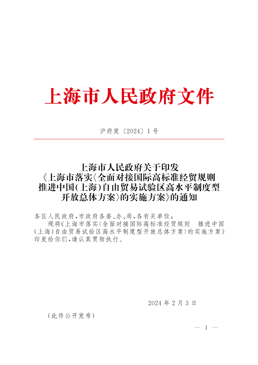 上海市落实《全面对接国际高标准经贸规则推进中国(上海)自由贸易试验区高水平制度型开放总体方案》的实施方案