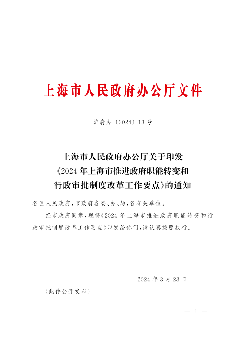上海市人民政府办公厅关于印发《2024年上海市推进政府职能转变和行政审批制度改革工作要点》的通知