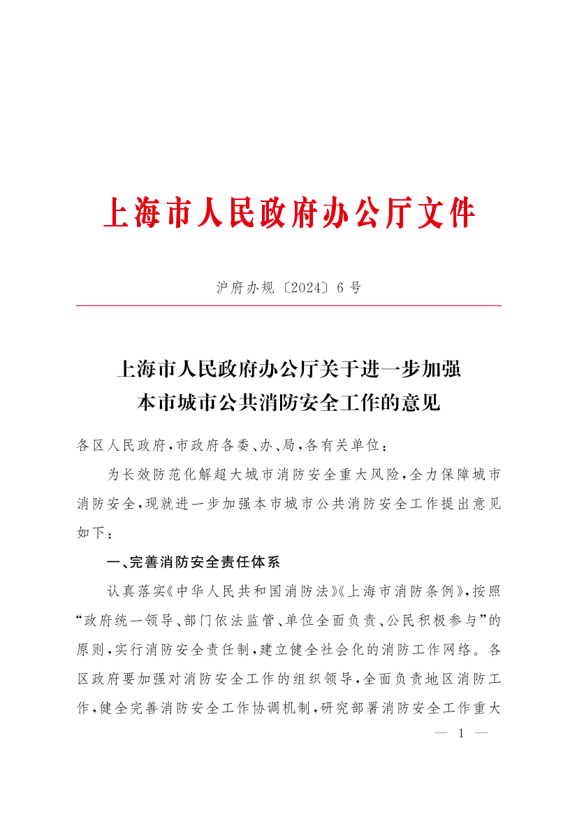 为长效防范化解超大城市消防安全重大风险,全力保障城市消防安全,现就进一步加强本市城市公共消防安全工作提出意见如下: