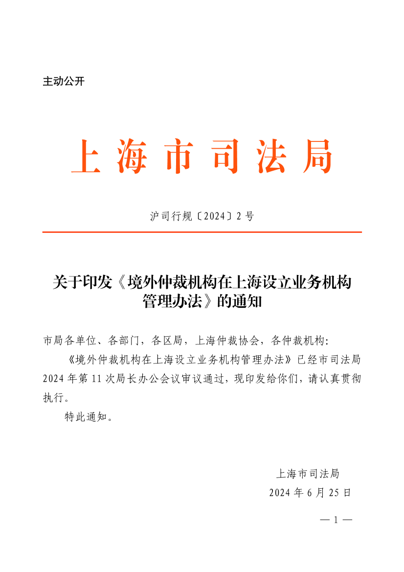 关于印发《境外仲裁机构在上海设立业务机构管理办法》的通知