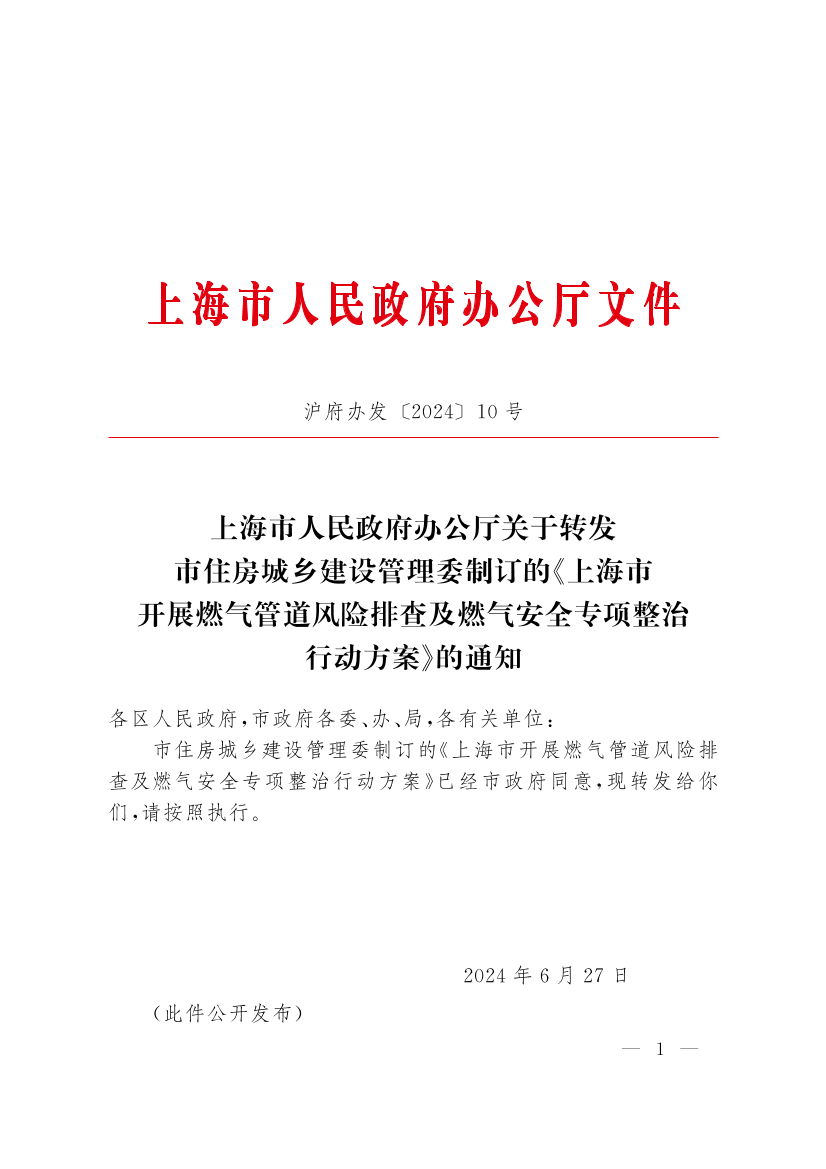 上海市开展燃气管道风险排查及燃气安全专项整治行动方案