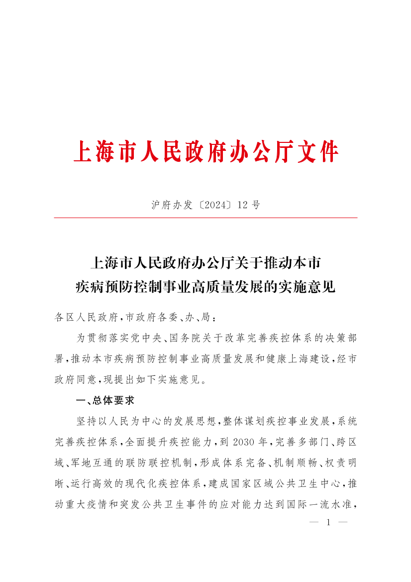 上海市人民政府办公厅关于推动本市疾病预防控制事业高质量发展的实施意见