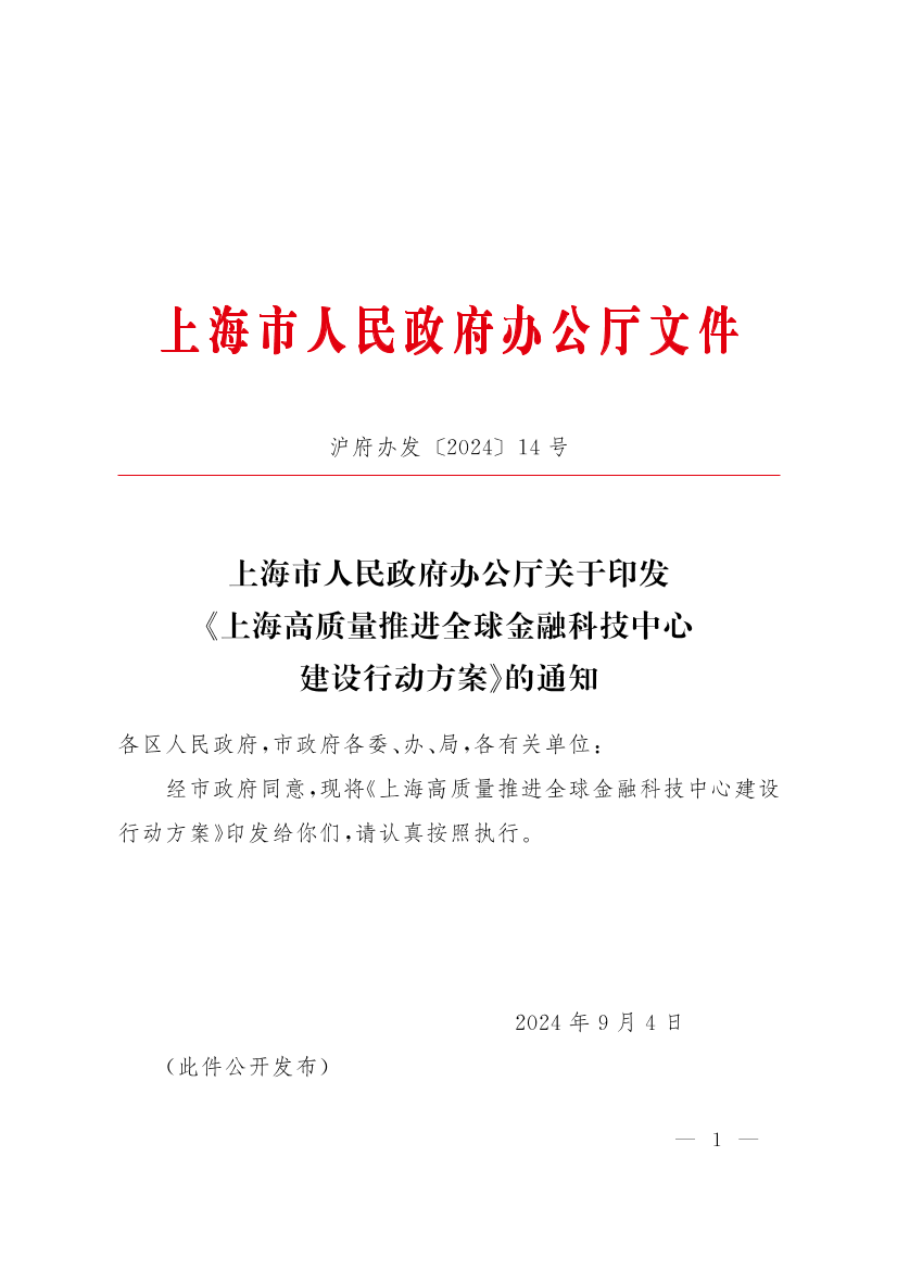 上海市人民政府办公厅关于印发《上海高质量推进全球金融科技中心建设行动方案》的通知