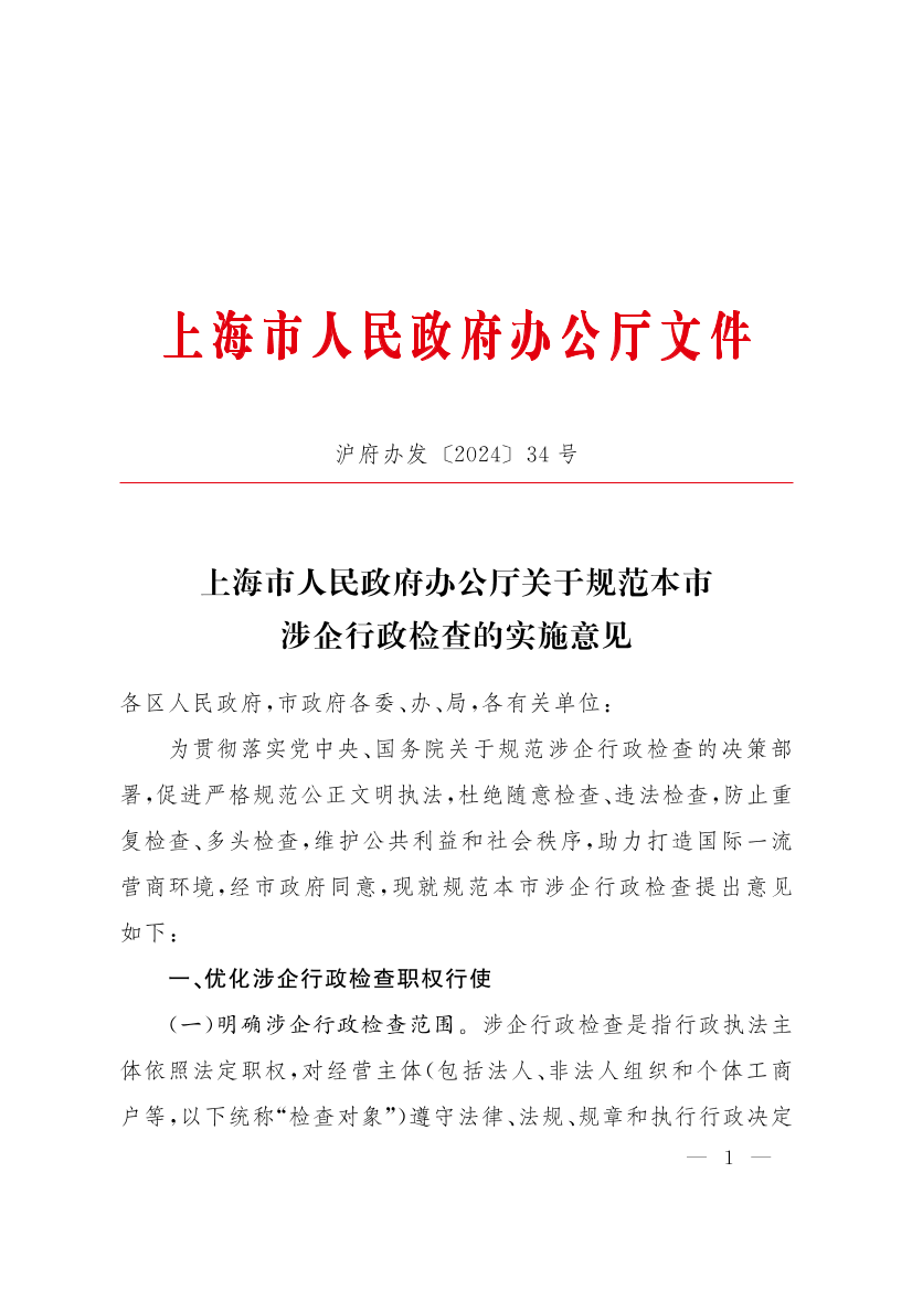 为贯彻落实党中央、国务院关于规范涉企行政检查的决策部署,促进严格规范公正文明执法,杜绝随意检查、违法检查,防止重复检查、多头检查,维护公共利益和社会秩序,助力打造国际一流营商环境,经市政府同意,现就规范本市涉企行政检查提出意见如下: