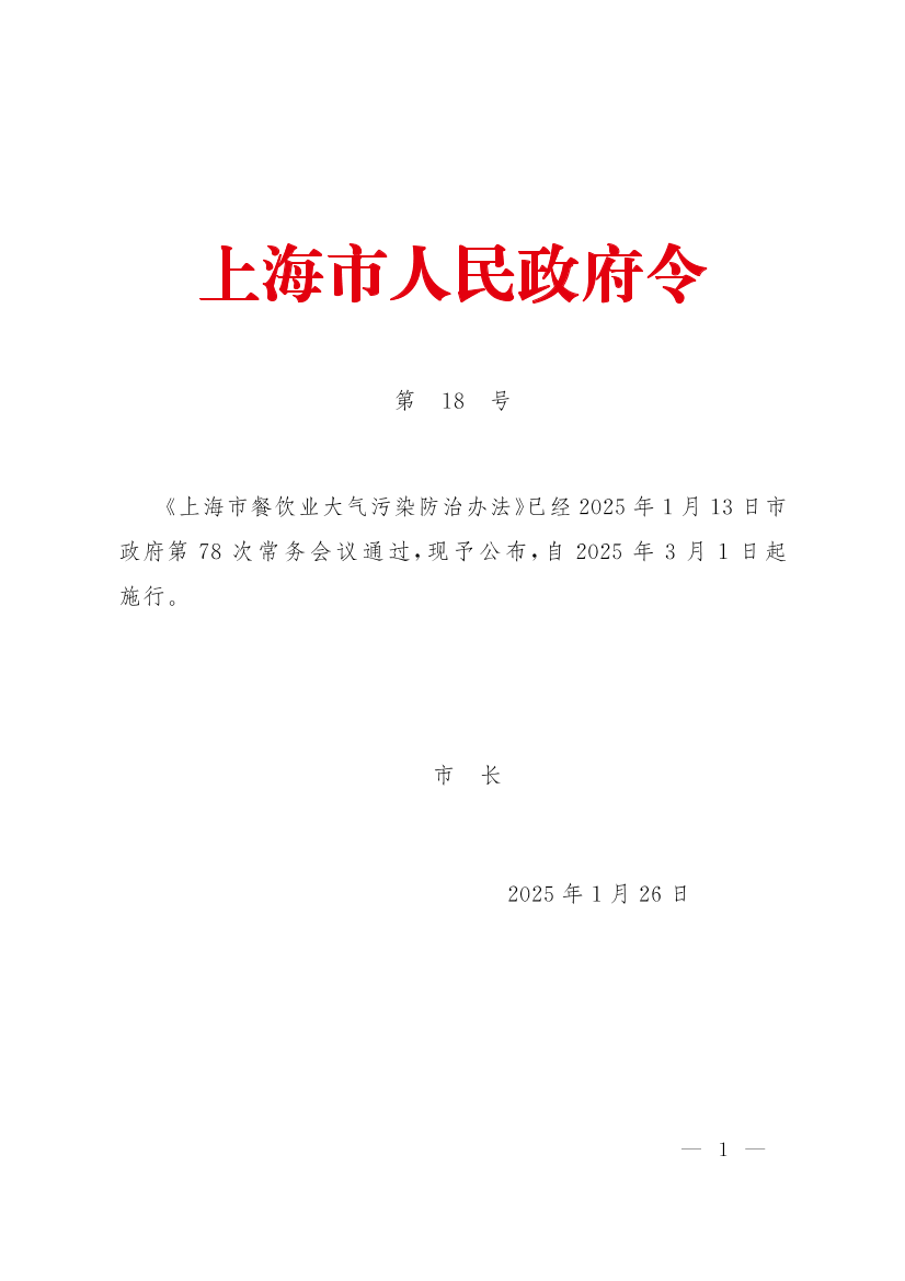 《上海市餐饮业大气污染防治办法》(沪府令18号)