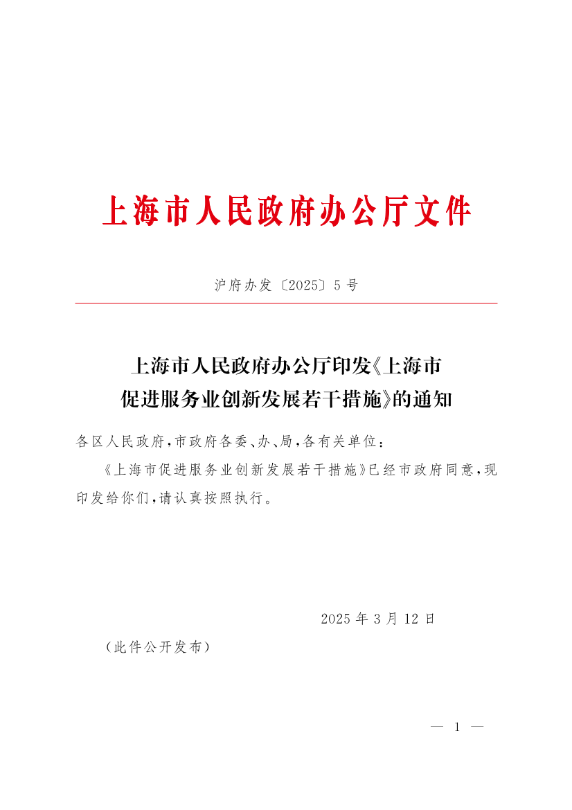 上海市人民政府办公厅印发《上海市促进服务业创新发展若干措施》的通知
