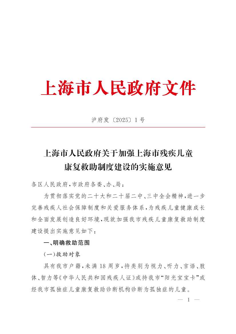 为贯彻落实党的二十大和二十届二中、三中全会精神,进一步完善残疾人社会保障制度和关爱服务体系,为残疾儿童健康成长和全面发展创造良好环境,现就加强我市残疾儿童康复救助制度建设提出实施意见如下: