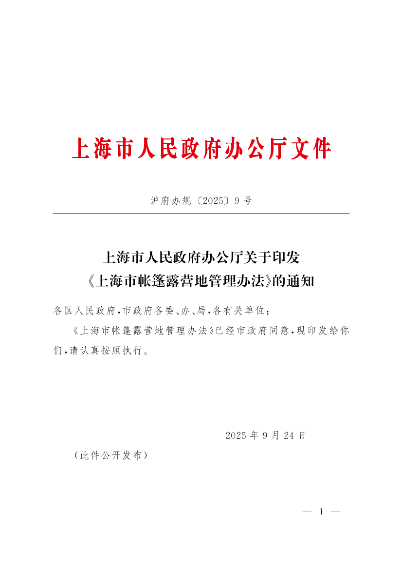 上海市人民政府办公厅关于印发《上海市帐篷露营地管理办法》的通知