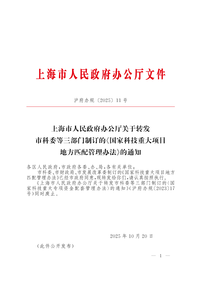 沪府办规〔2025〕11号