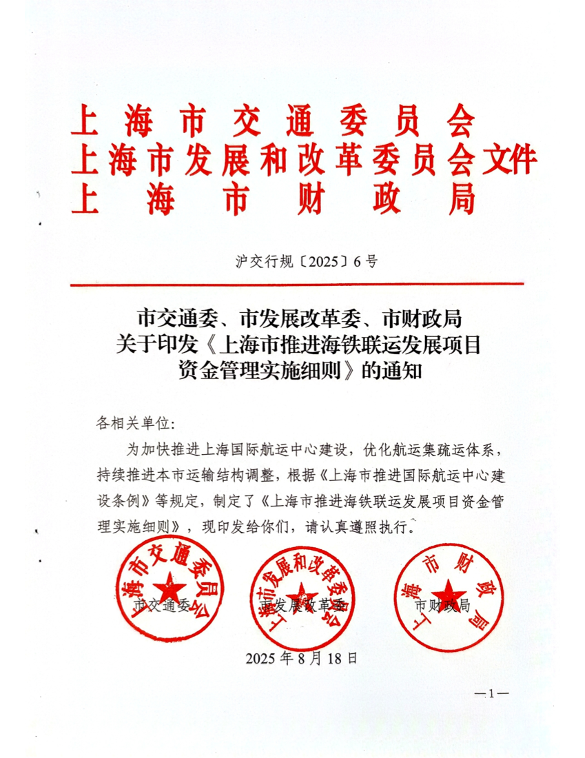 市交通委、市发展改革委、市财政局关于印发《上海市推进海铁联运发展项目资金管理实施细则》的通知