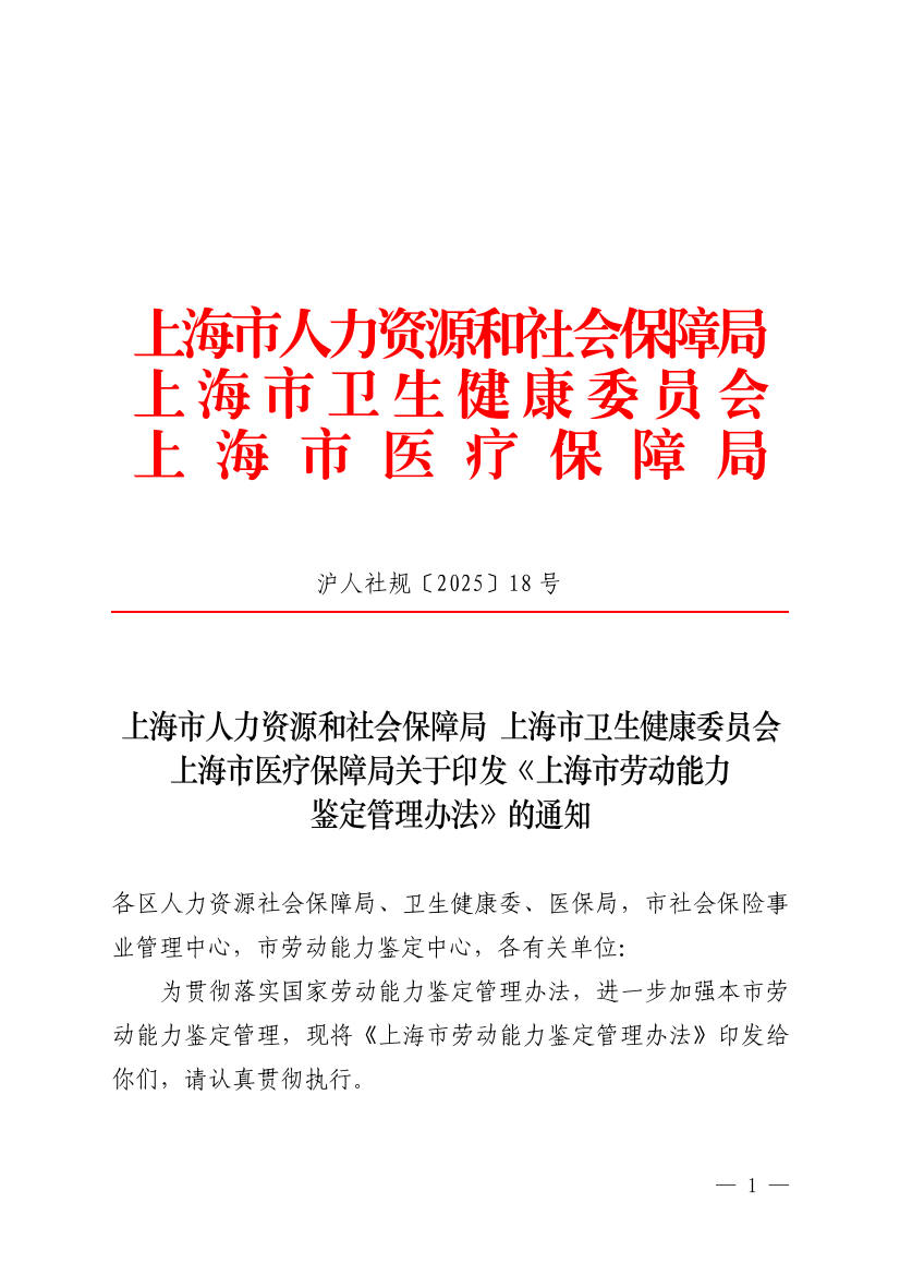 上海市人力资源和社会保障局 上海市卫生健康委员会上海市医疗保障局关于印发《上海市劳动能力鉴定管理办法》的通知