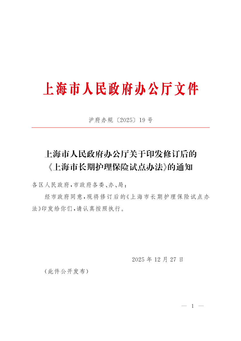 上海市人民政府办公厅关于印发修订后的《上海市长期护理保险试点办法》的通知