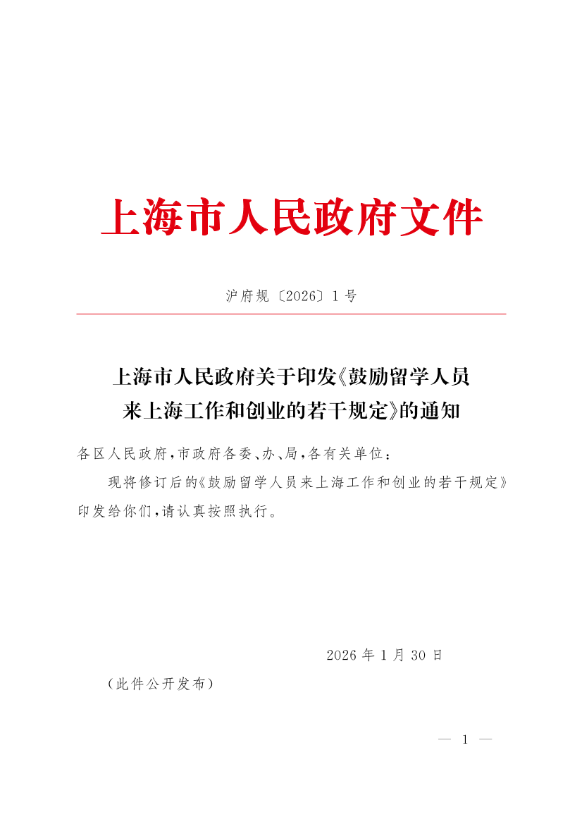 现将修订后的《鼓励留学人员来上海工作和创业的若干规定》印发给你们,请认真按照执行。
