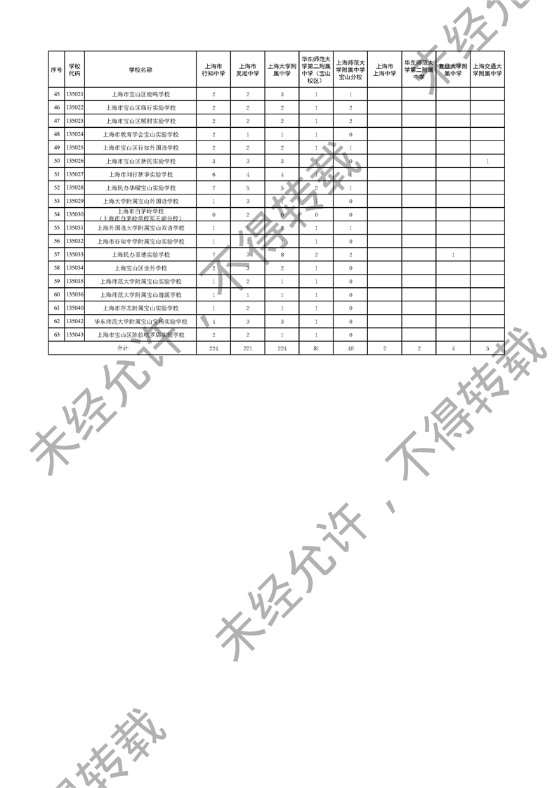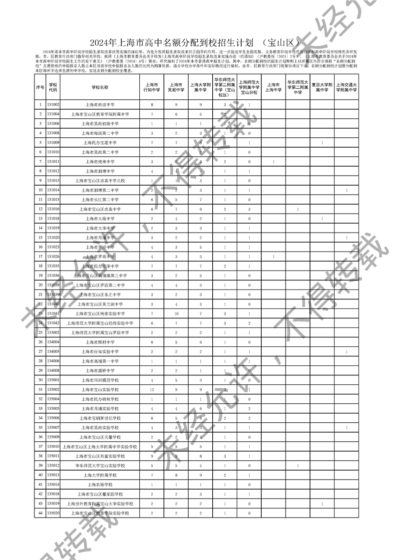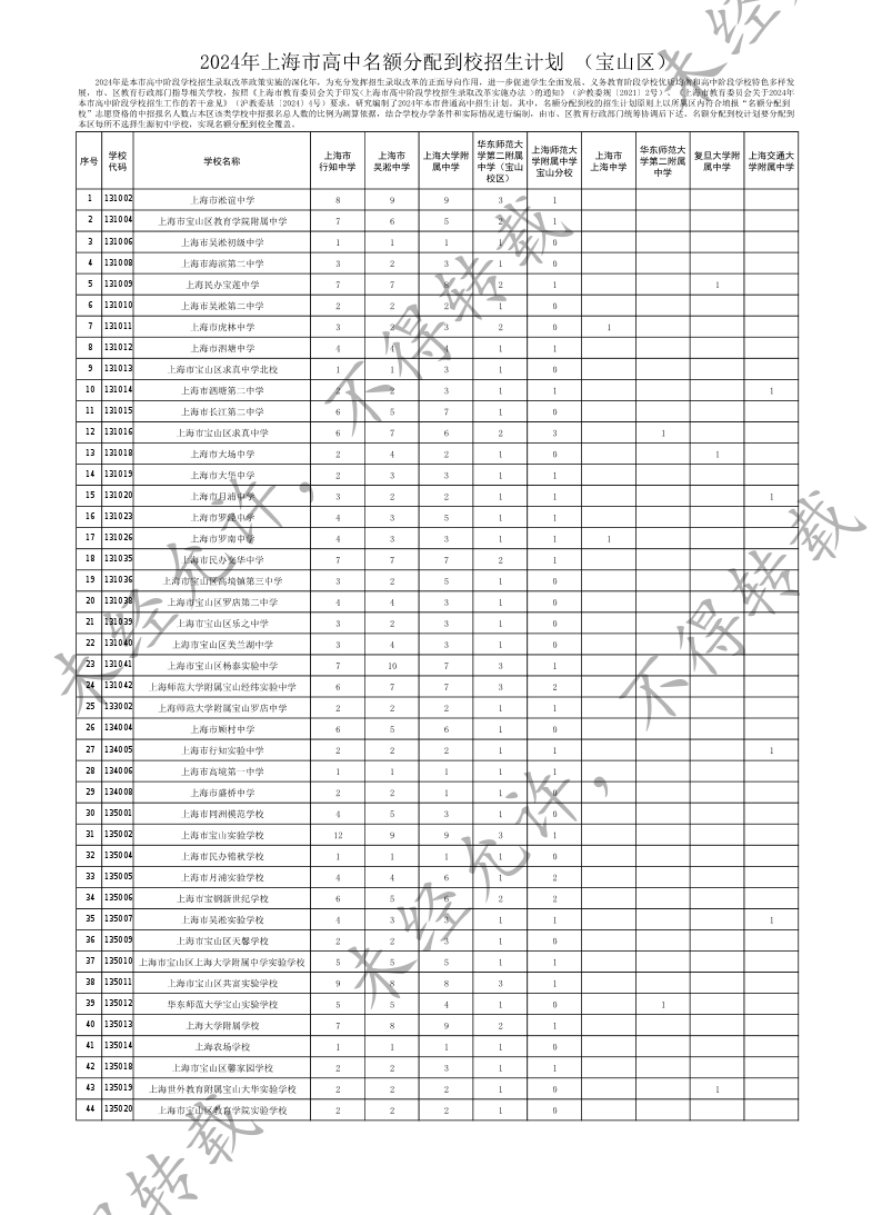 2024年上海市高中名额分配到校招生计划(宝山区)