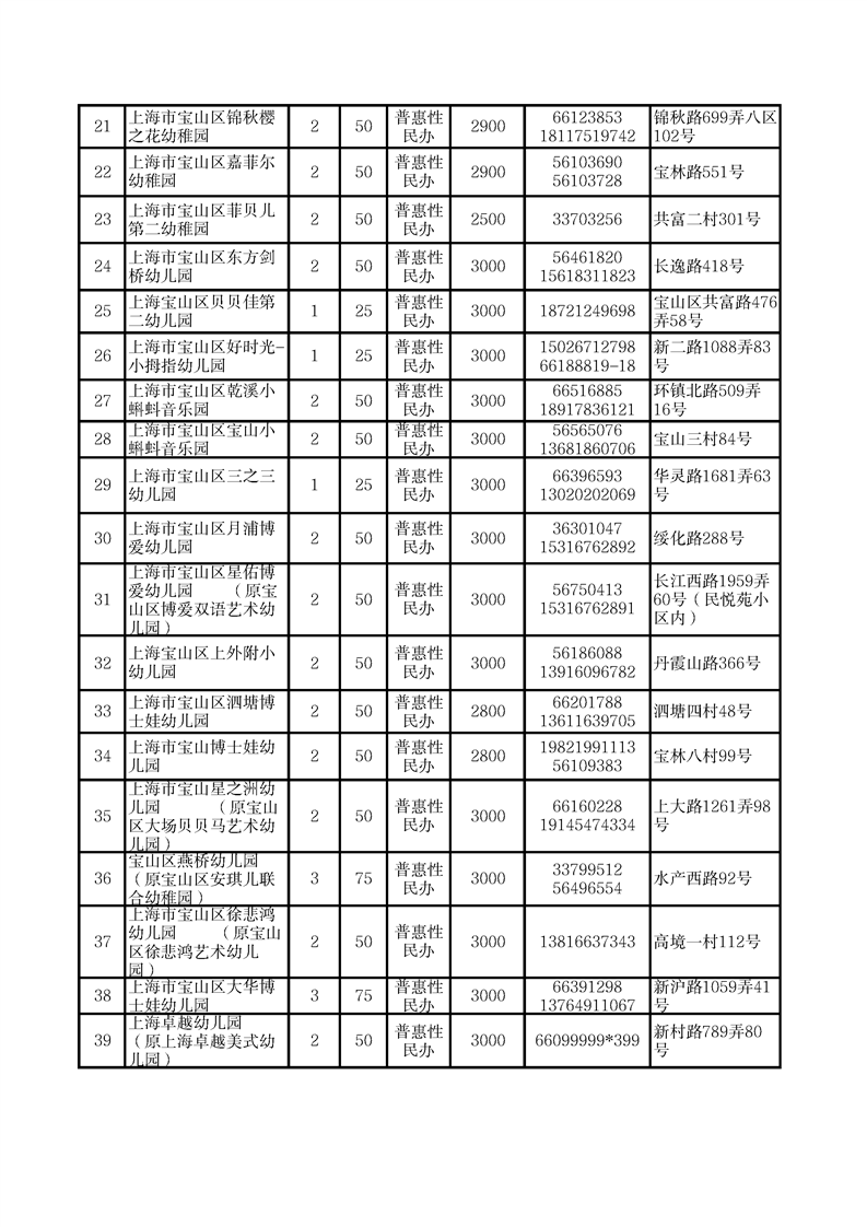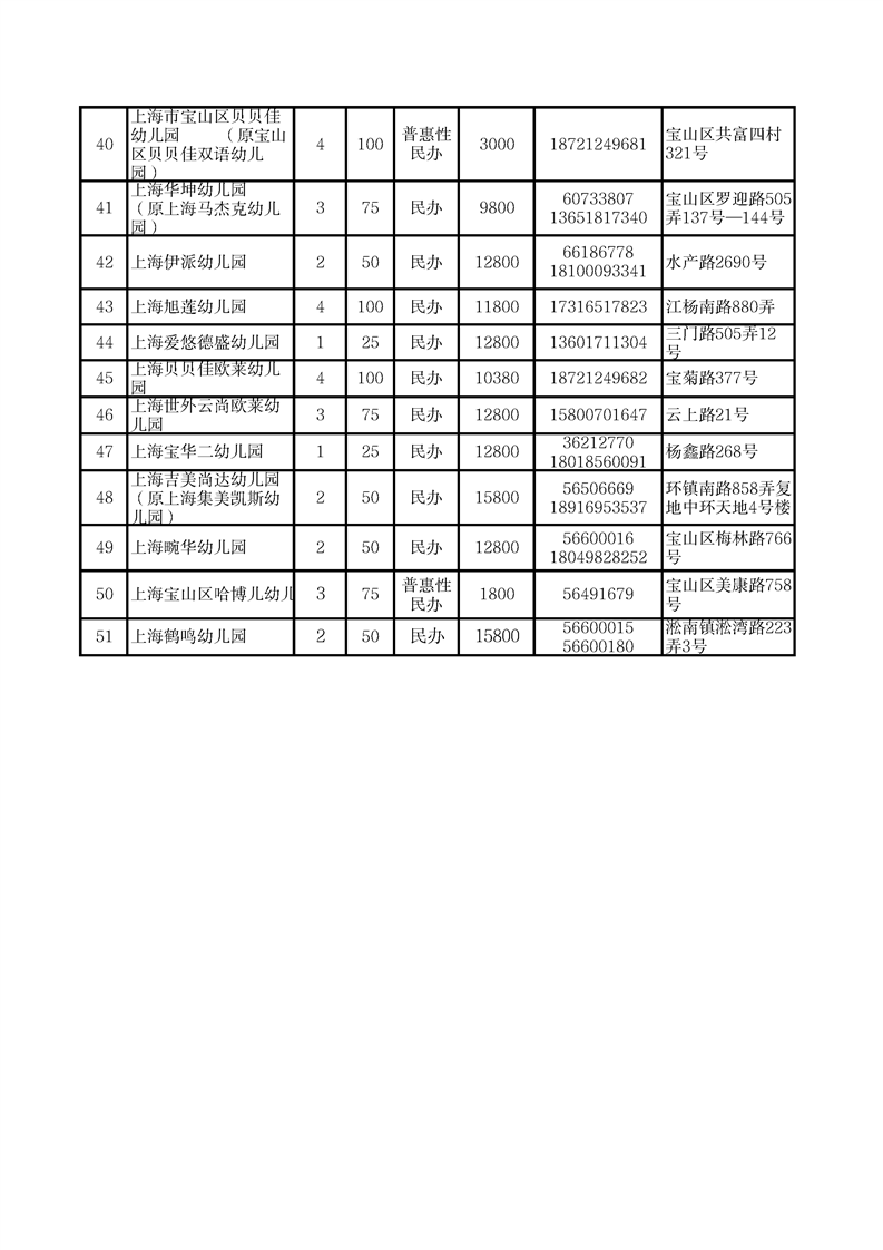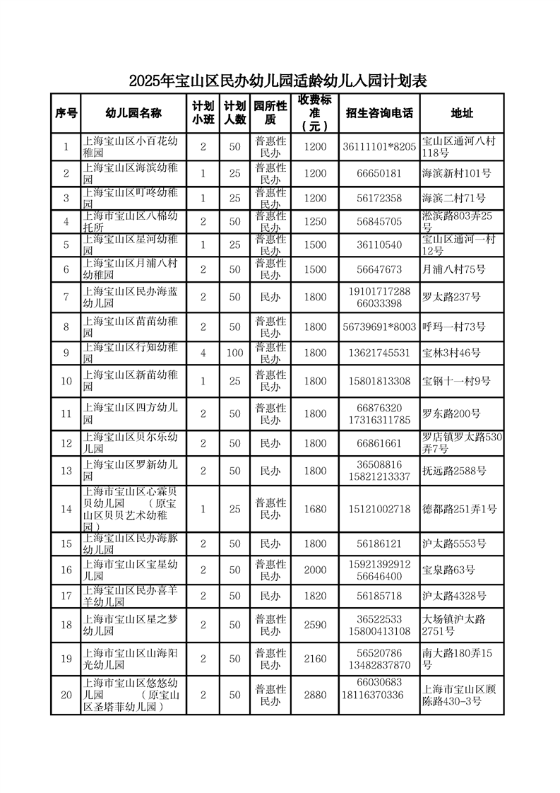 2025年宝山区民办幼儿园适龄幼儿入园计划表