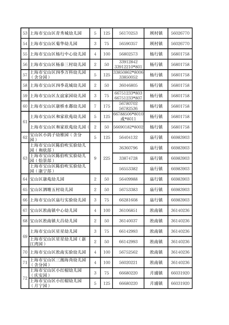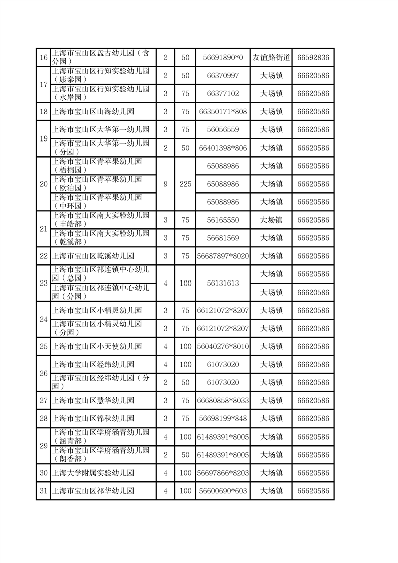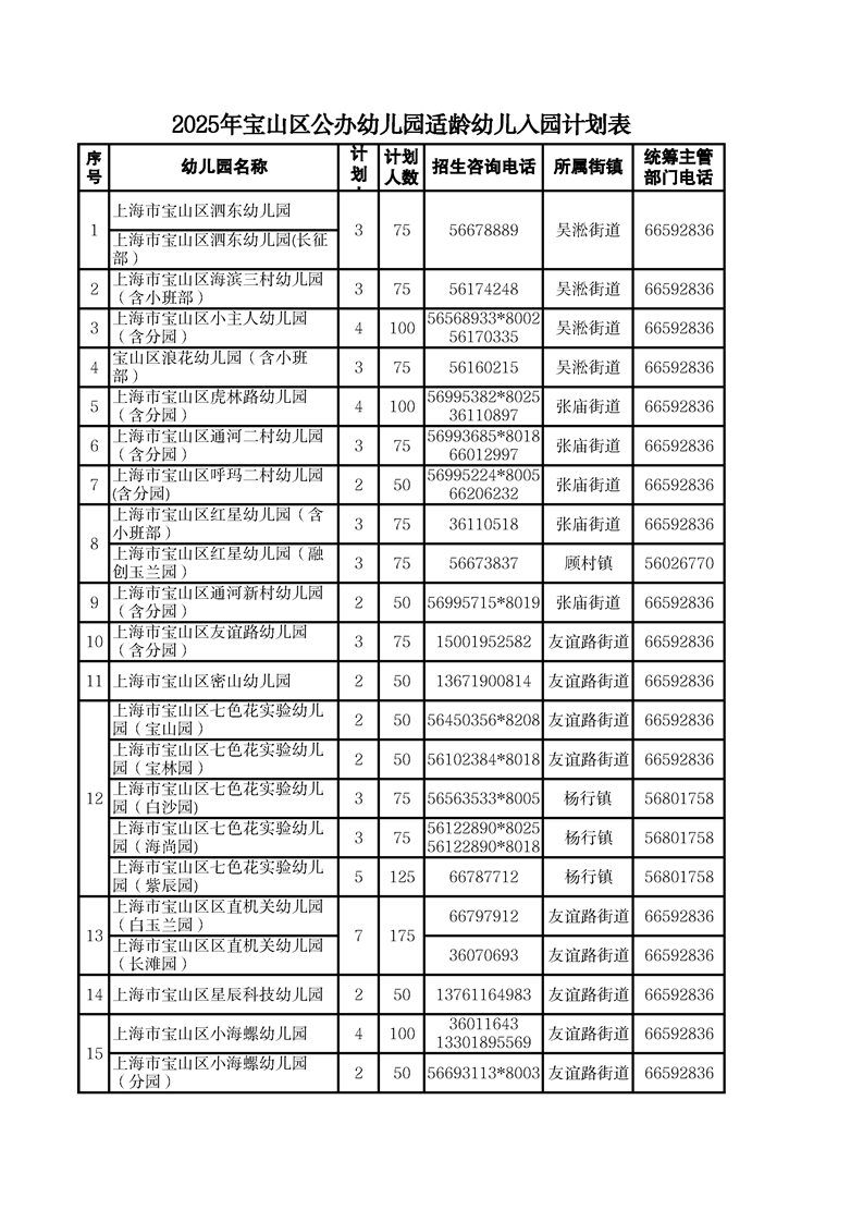 2025年宝山区公办幼儿园适龄幼儿入园计划表