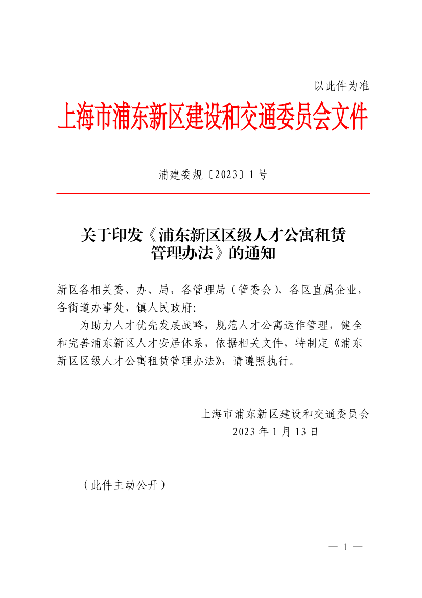 为助力人才优先发展战略,规范人才公寓运作管理,健全和完善浦东新区人才安居体系,依据相关文件,特制定《浦东新区区级人才公寓租赁管理办法》,请遵照执行。