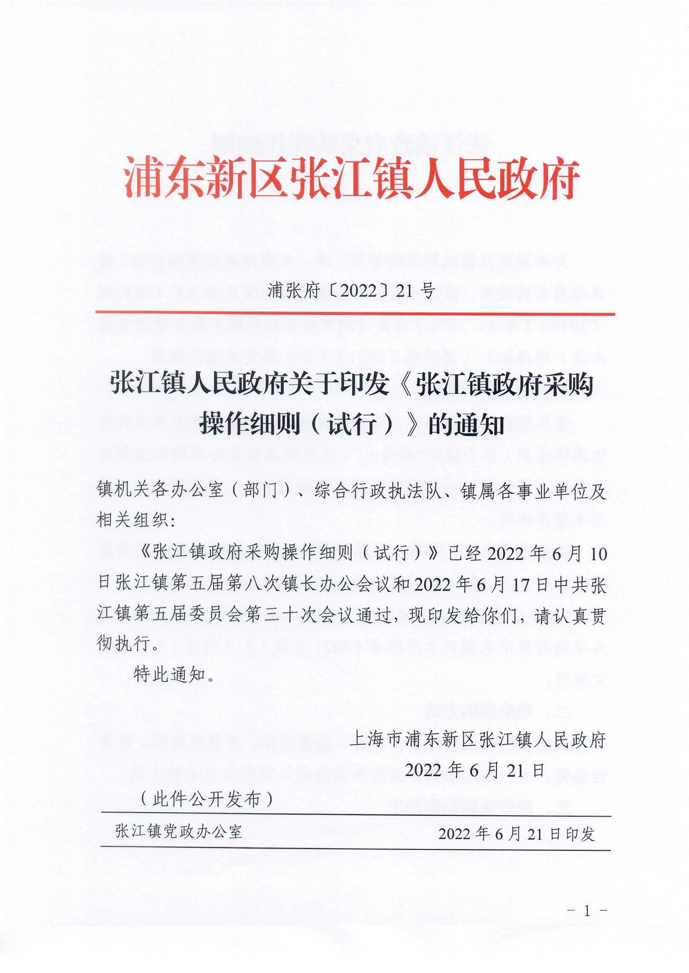 《张江镇政府采购操作细则(试行)》已经2022年6月10日张江镇第五届第八次镇长办公会议和2022年6月17日中共张江镇第五届委员会第三十次会议通过,现印发给你们,请认真贯彻执行。