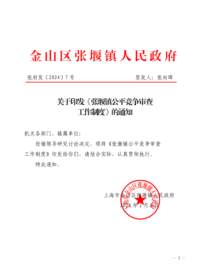 经镇领导研究讨论决定,现将《张堰镇公平竞争审查工作制度》印发给你们,请结合实际,认真贯彻执行。