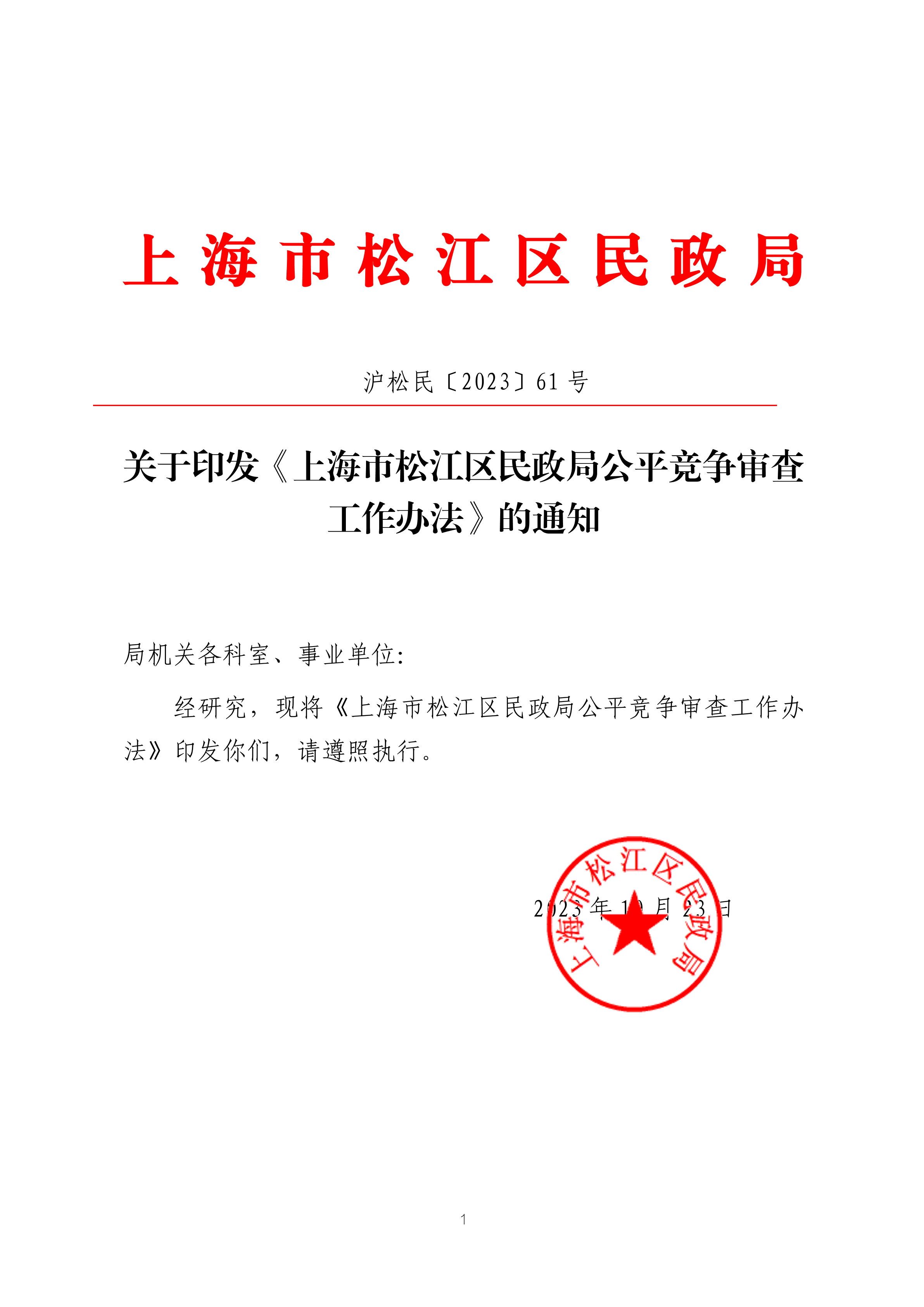 关于印发《上海市松江区民政局公平竞争审查工作办法》的通知
