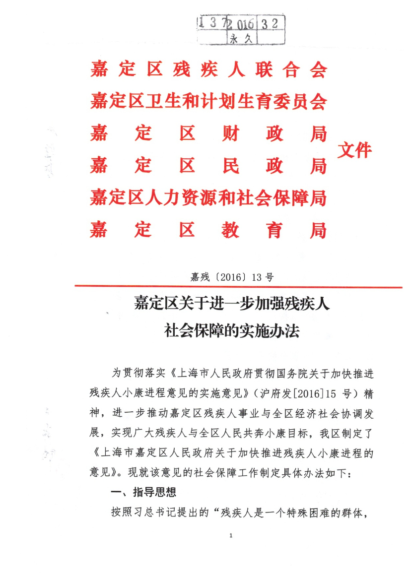 嘉定区关于进一步加强残疾人社会保障的实施办法