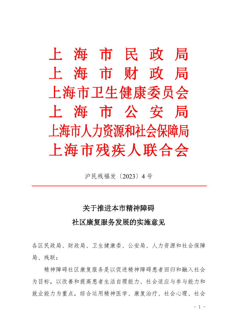 关于推进本市精神障碍社区康复服务发展的实施意见