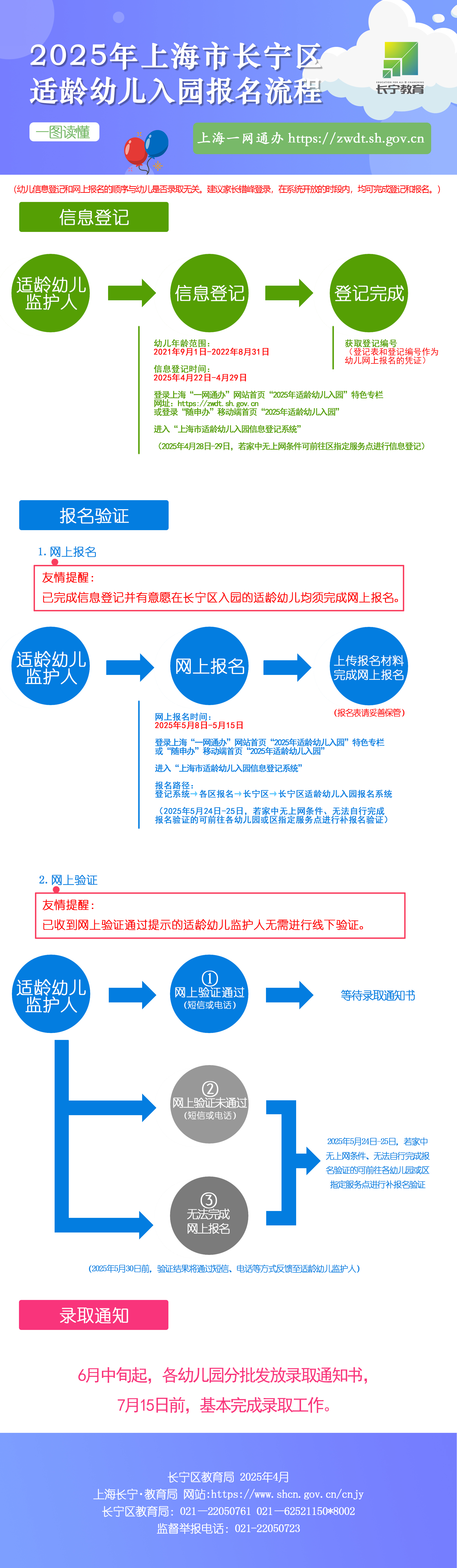 一图读懂:2025年上海市长宁区适龄幼儿入园报名流程