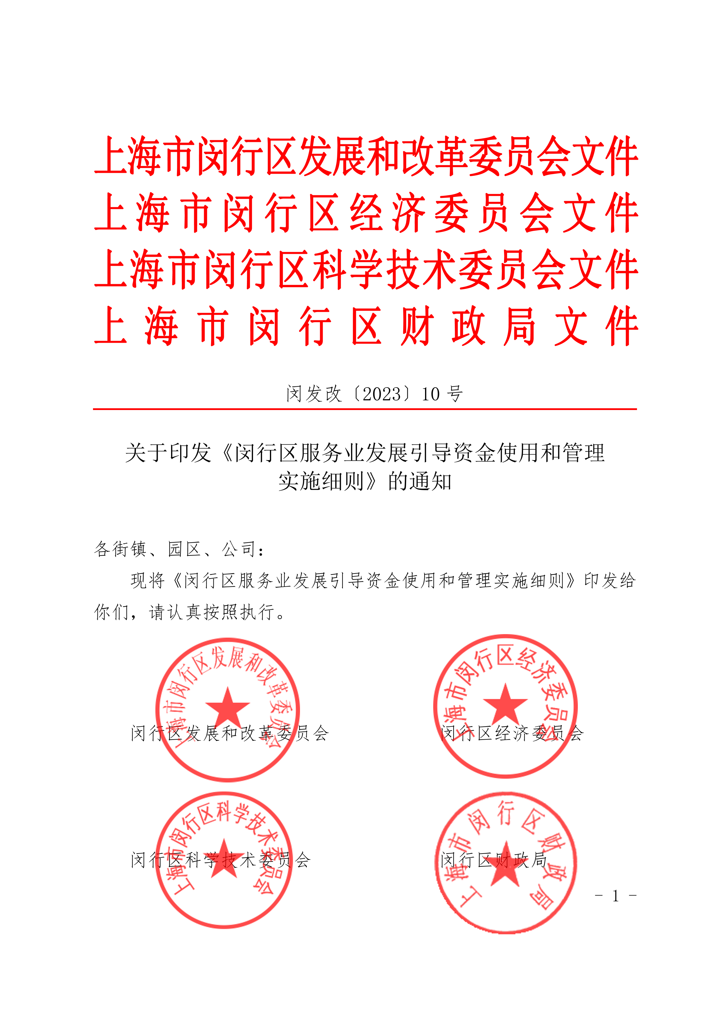 关于印发《闵行区服务业发展引导资金使用和管理实施细则》的通知