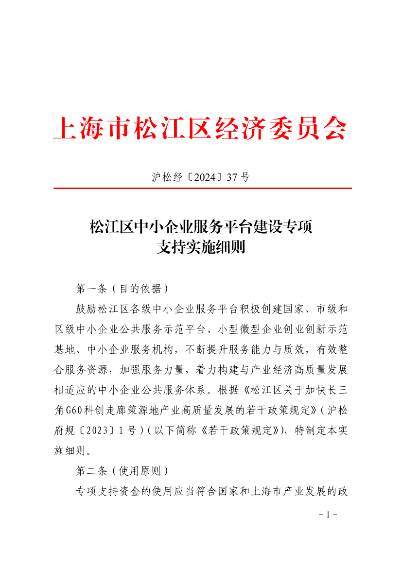 鼓励松江区各级中小企业服务平台积极创建国家、市级和区级中小企业公共服务示范平台、小型微型企业创业创新示范基地、中小企业服务机构,不断提升服务能力与质效,有效整合服务资源,加强服务力量,着力构建与产业经济高质量发展相适应的中小企业公共服务体系。根据《松江区关于加快长三角G60科创走廊策源地产业高质量发展的若干政策规定》(沪松府规〔2023〕1号)(以下简称《若干政策规定》),特制定本实施细则。