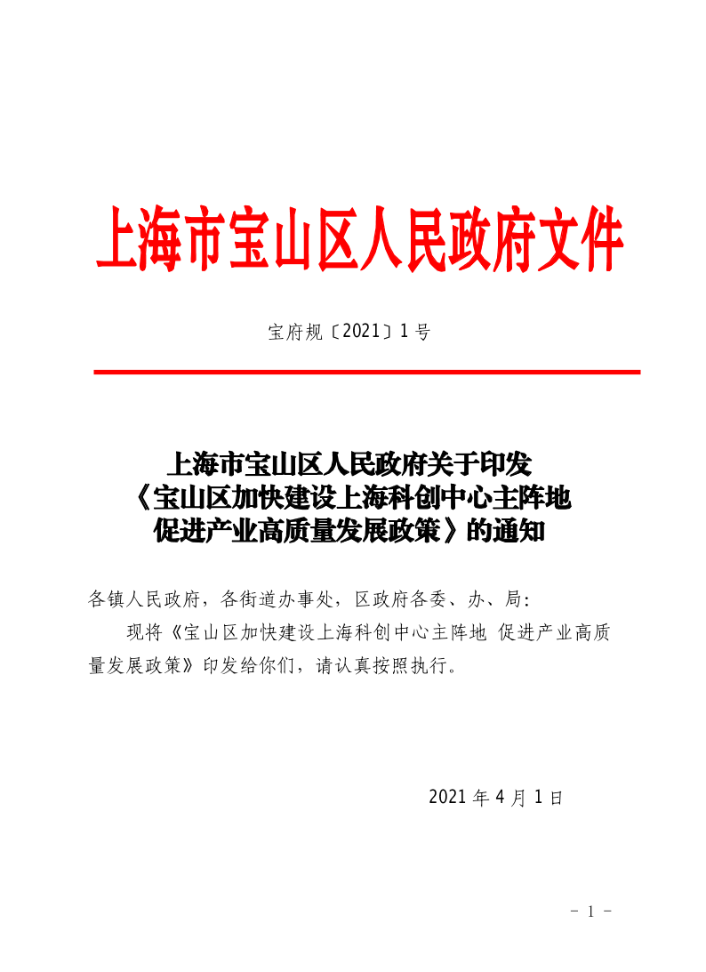 印发日期:2021-04-01 宝府规〔2021〕1号