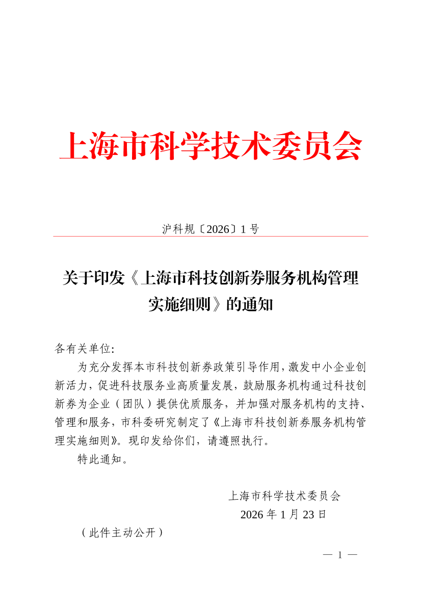 沪科规〔2026〕1号
