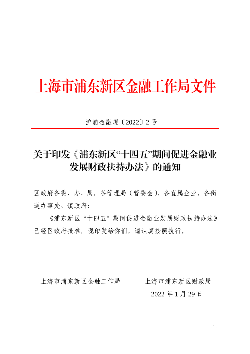 印发日期:2022-01-29 沪浦金融规〔2022〕2号