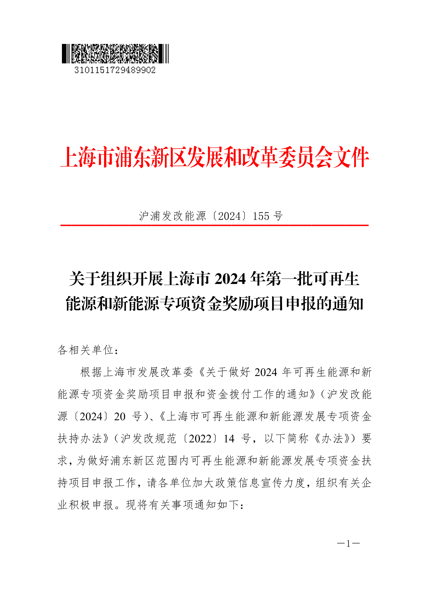 1. 《关于做好2024年可再生能源和新能源专项资金奖励项目申报和资金拨付工作的通知》(沪发改能源〔2024〕20号)