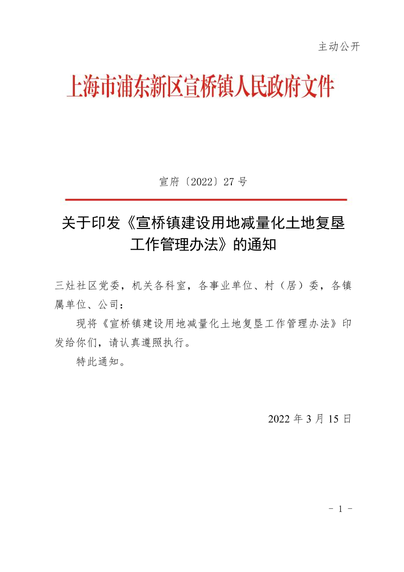 关于印发《宣桥镇建设用地减量化土地复垦工作管理办法》的通知