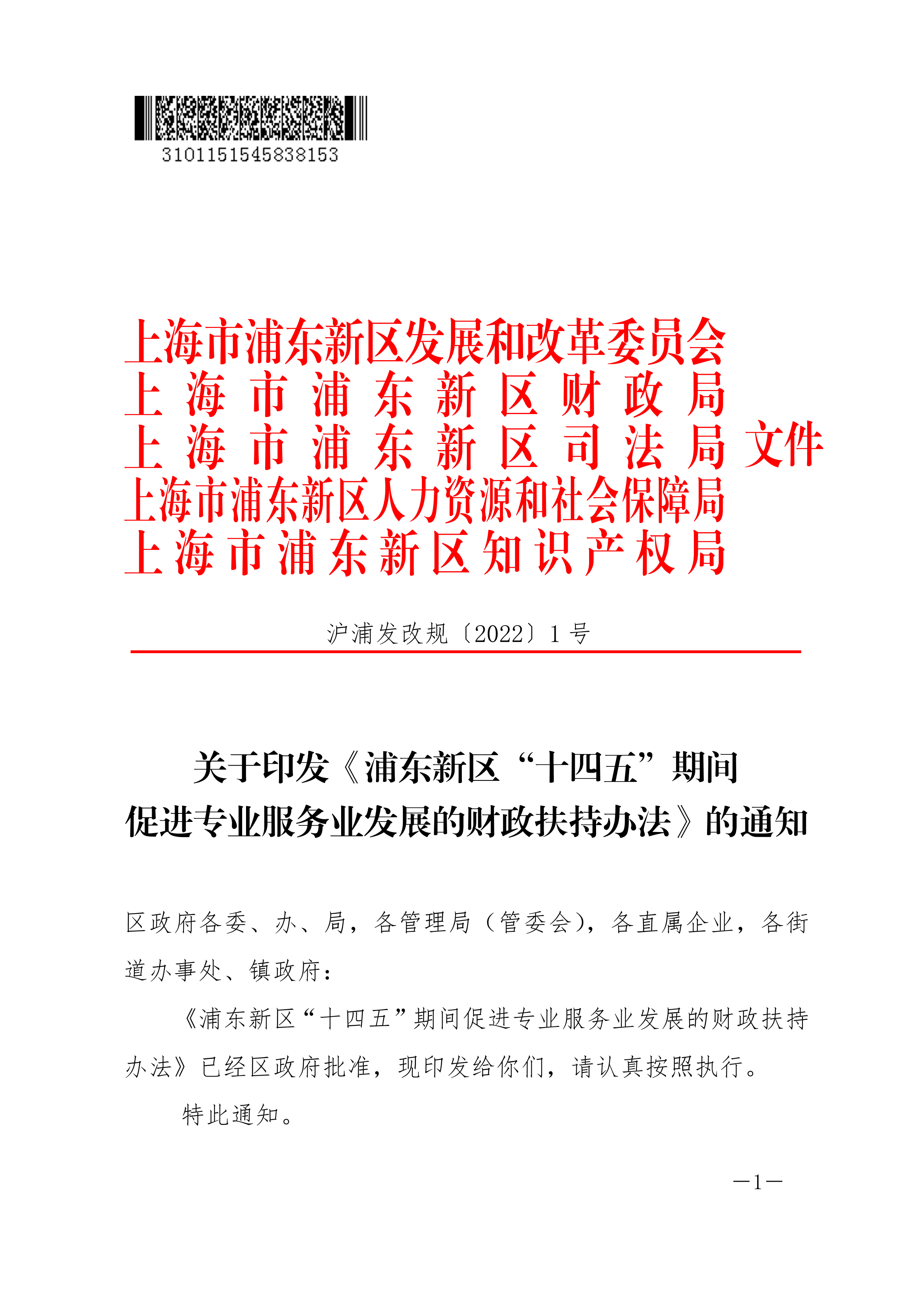 浦东新区“十四五”期间促进专业服务业发展的财政扶持办法