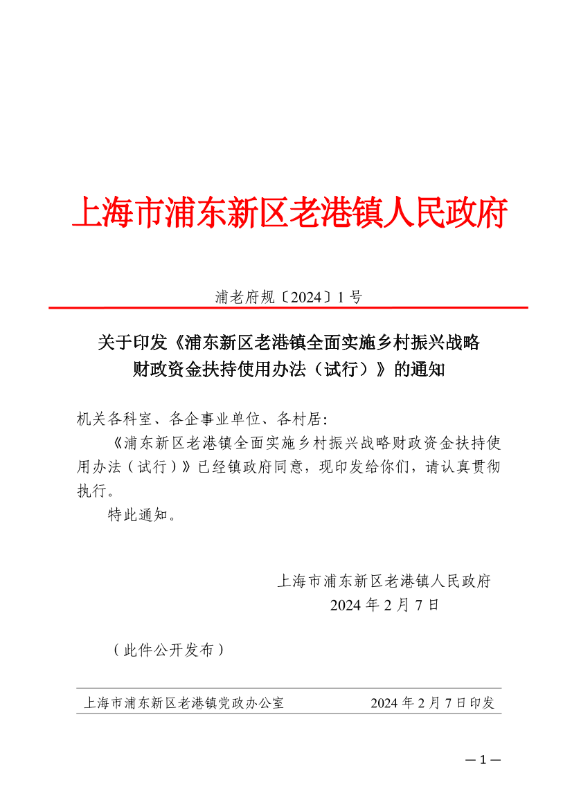 1.本办法自2024年4月1日起试行,试行期为一年,2023年10月1日至2024年3月31日期间,符合本办法规定的,参照本办法执行,原《浦东新区老港镇全面实施乡村振兴战略财政资金扶持使用办法》(浦老府〔2019〕124号)同时停止实行。