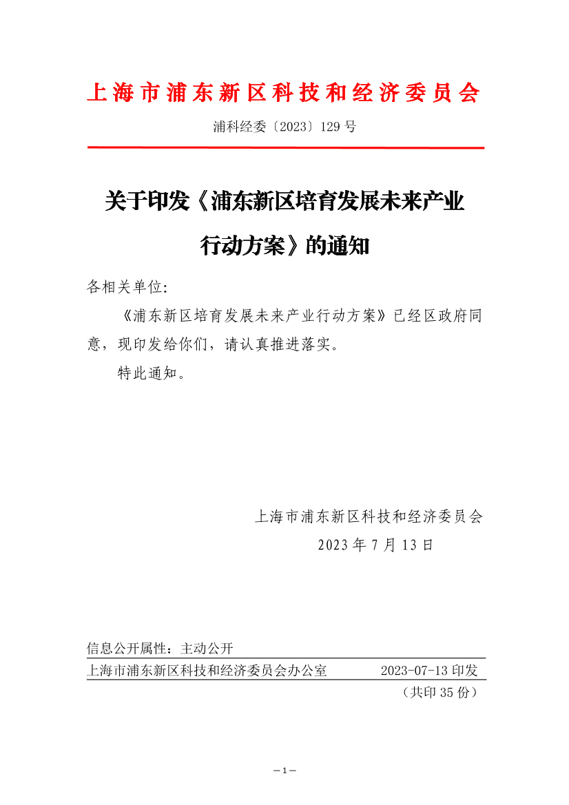 《浦东新区培育发展未来产业行动方案》已经区政府同意,现印发给你们,请认真推进落实。