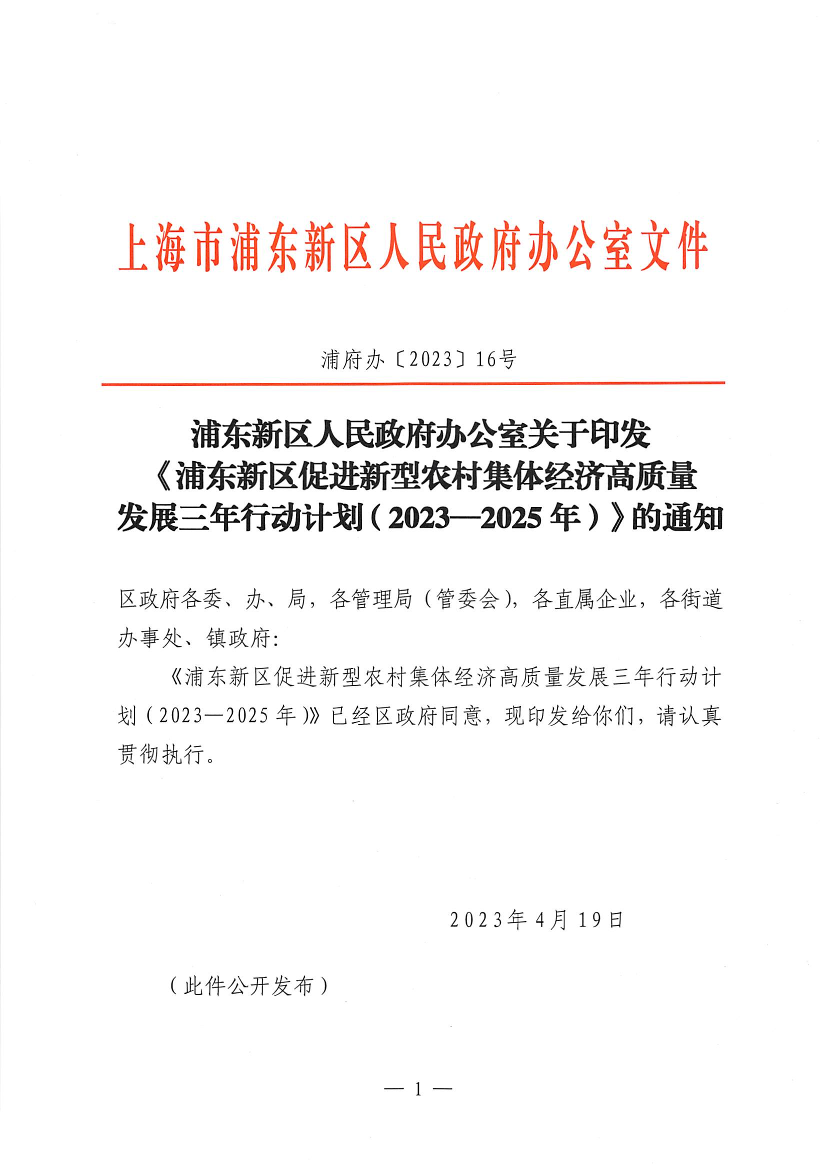 浦东新区促进新型农村集体经济高质量发展三年行动计划(2023—2025年)