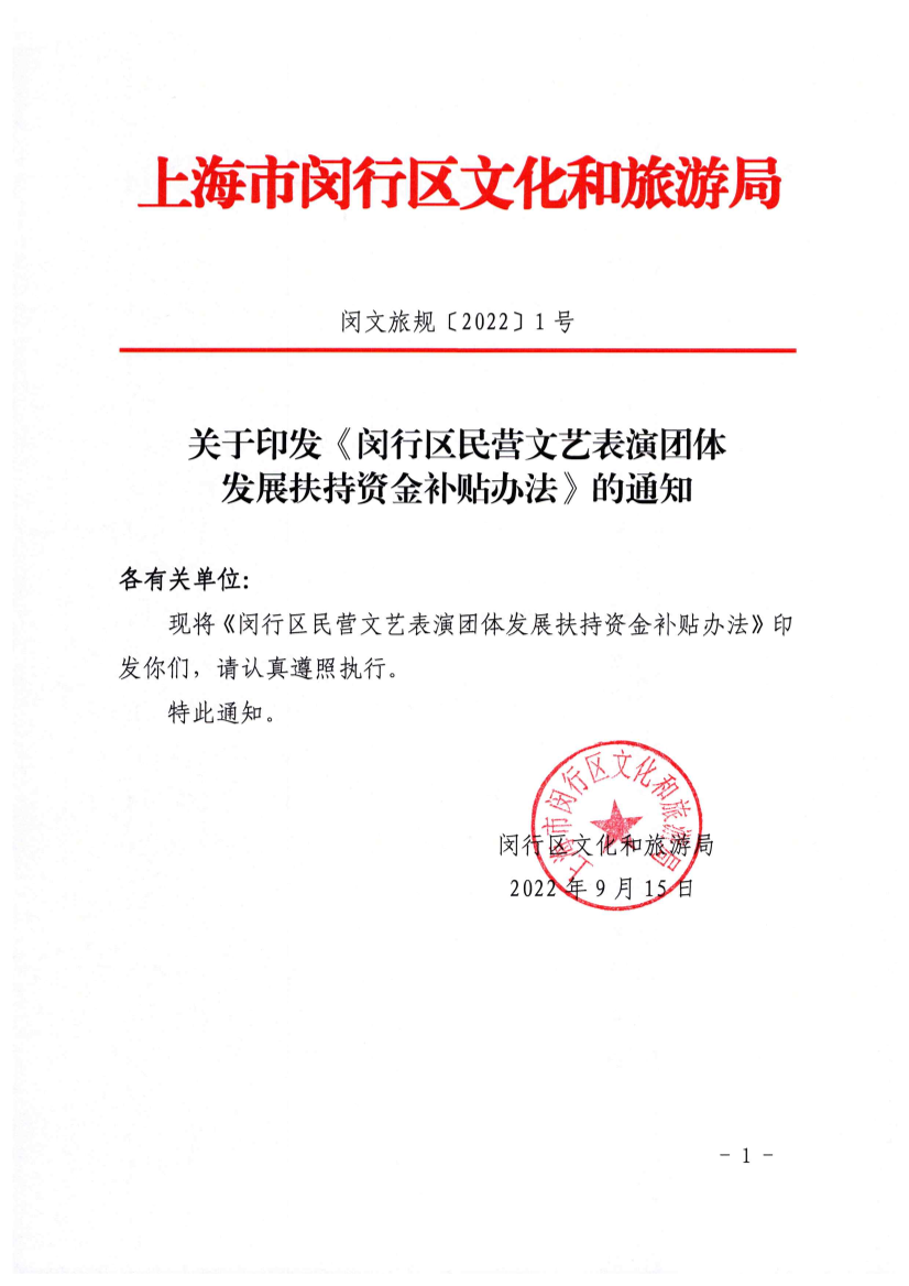 关于印发《闵行区民营文艺表演团体发展扶持资金补贴办法》的通知