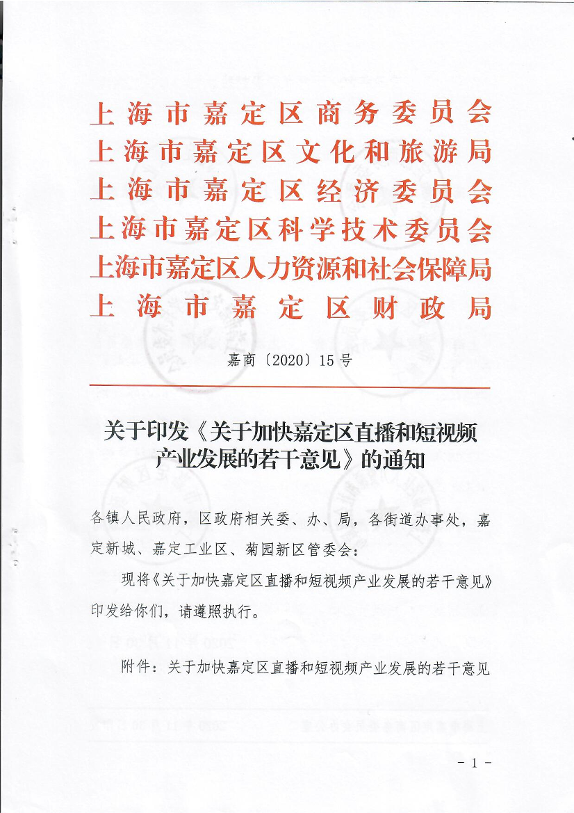 关于加快嘉定区直播和短视频产业发展的若干意见