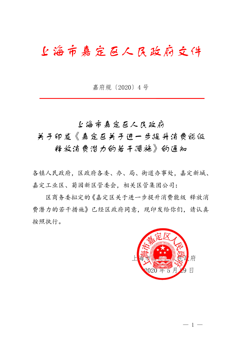 关于印发《嘉定区关于进一步提升消费能级释放消费潜力的若干措施》的通知