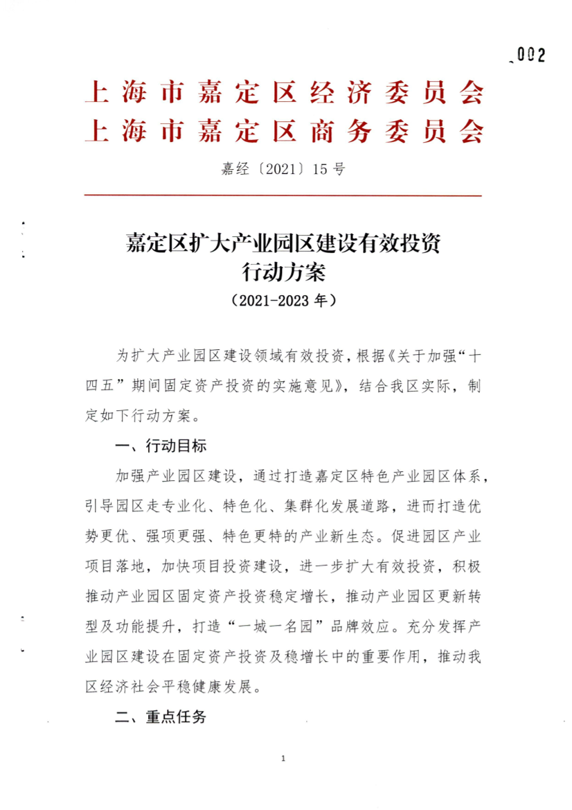 嘉定区扩大产业园区建设有效投资行动方案(2021-2023年)