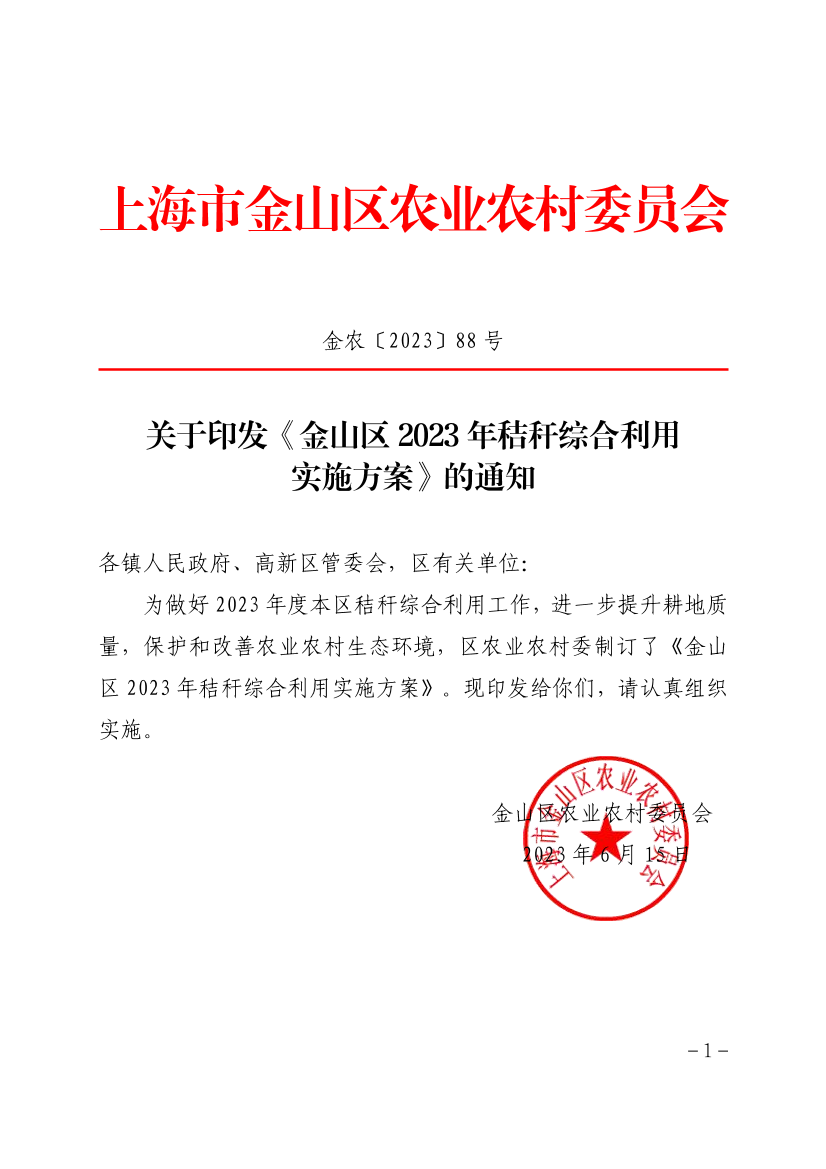 为做好2023年度本区秸秆综合利用工作,进一步提升耕地质量,保护和改善农业农村生态环境,区农业农村委制订了《金山区2023年秸秆综合利用实施方案》。现印发给你们,请认真组织实施。