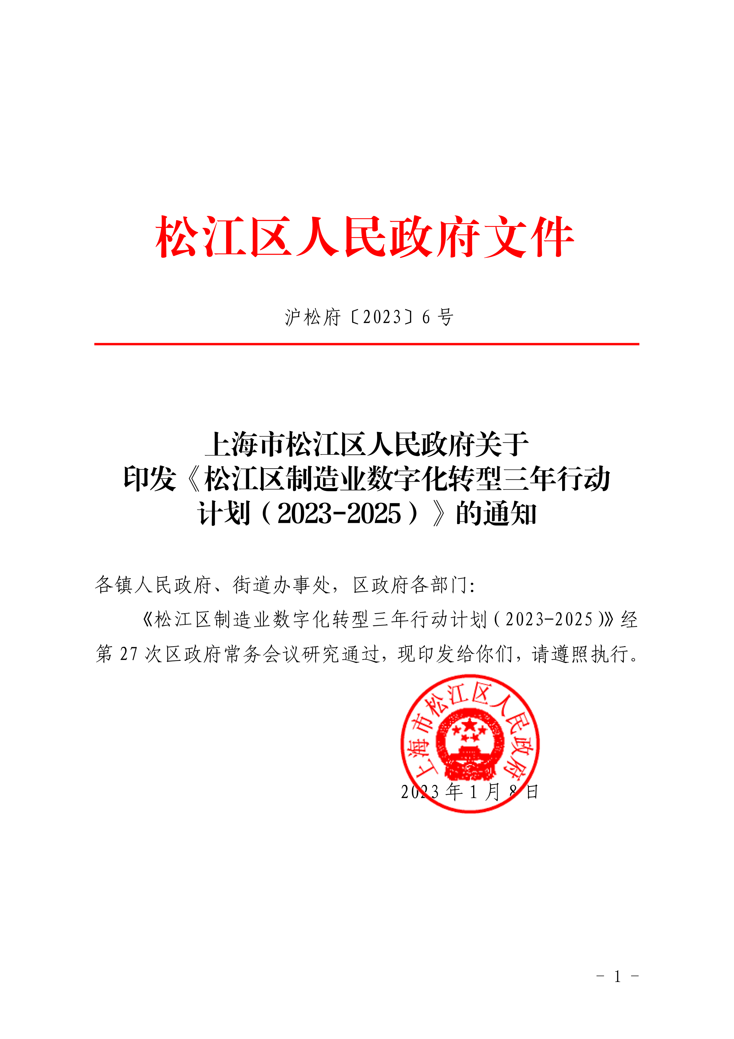 关于印发《松江区制造业数字化转型三年行动计划(2023-2025)》的通知